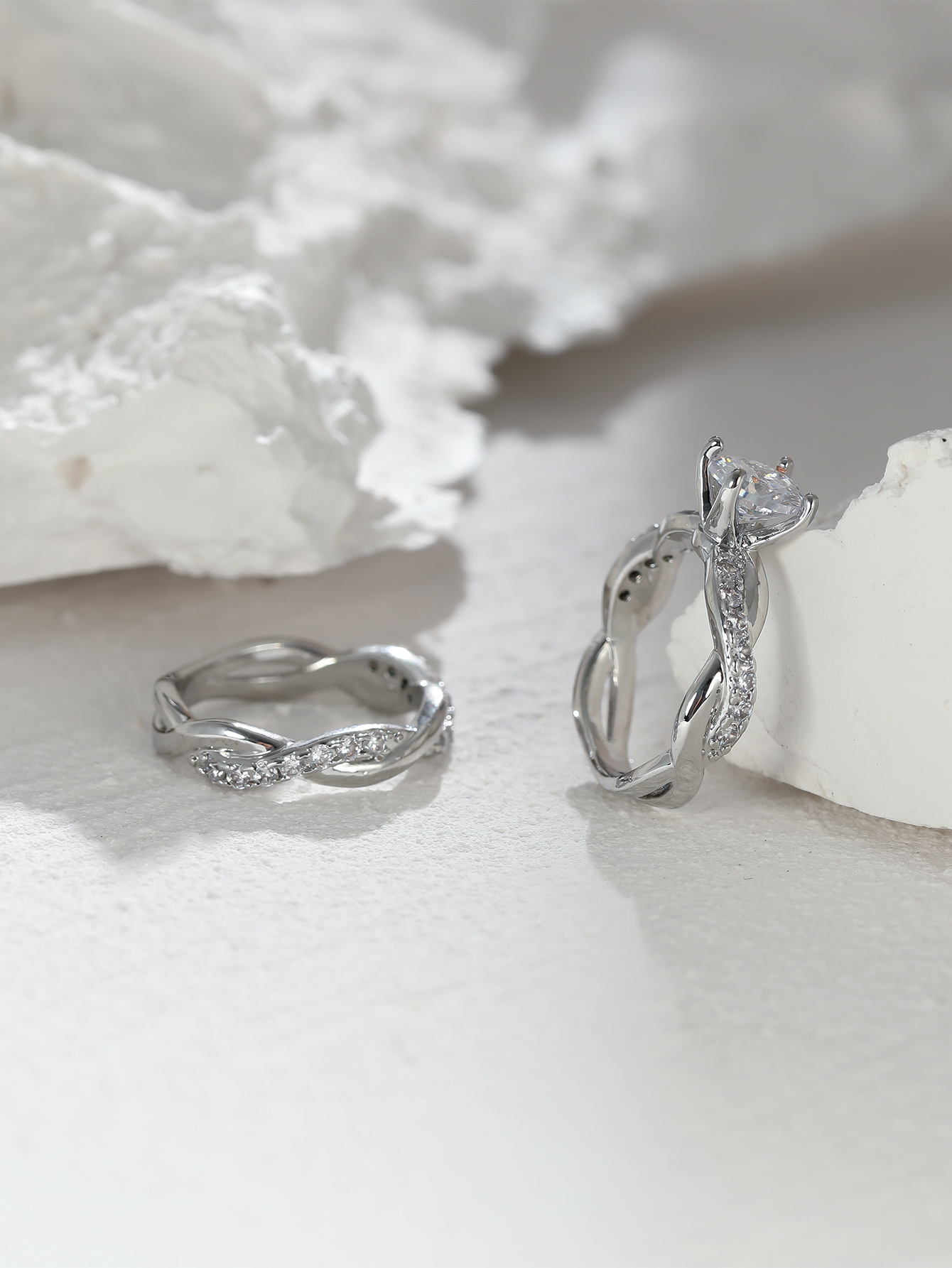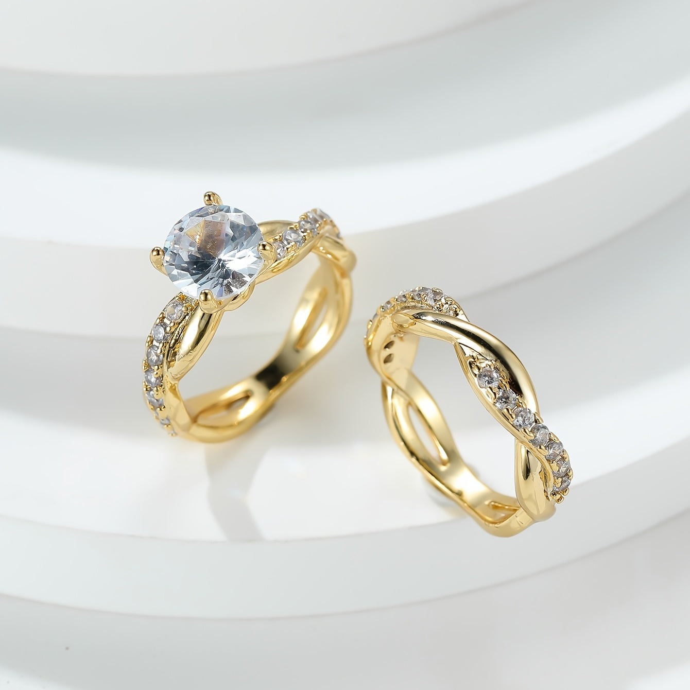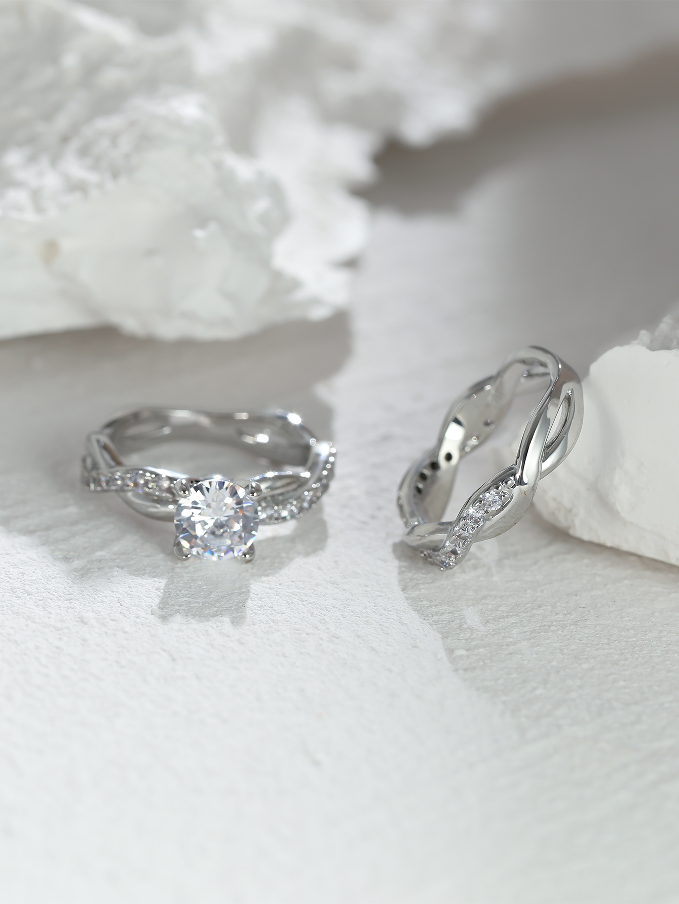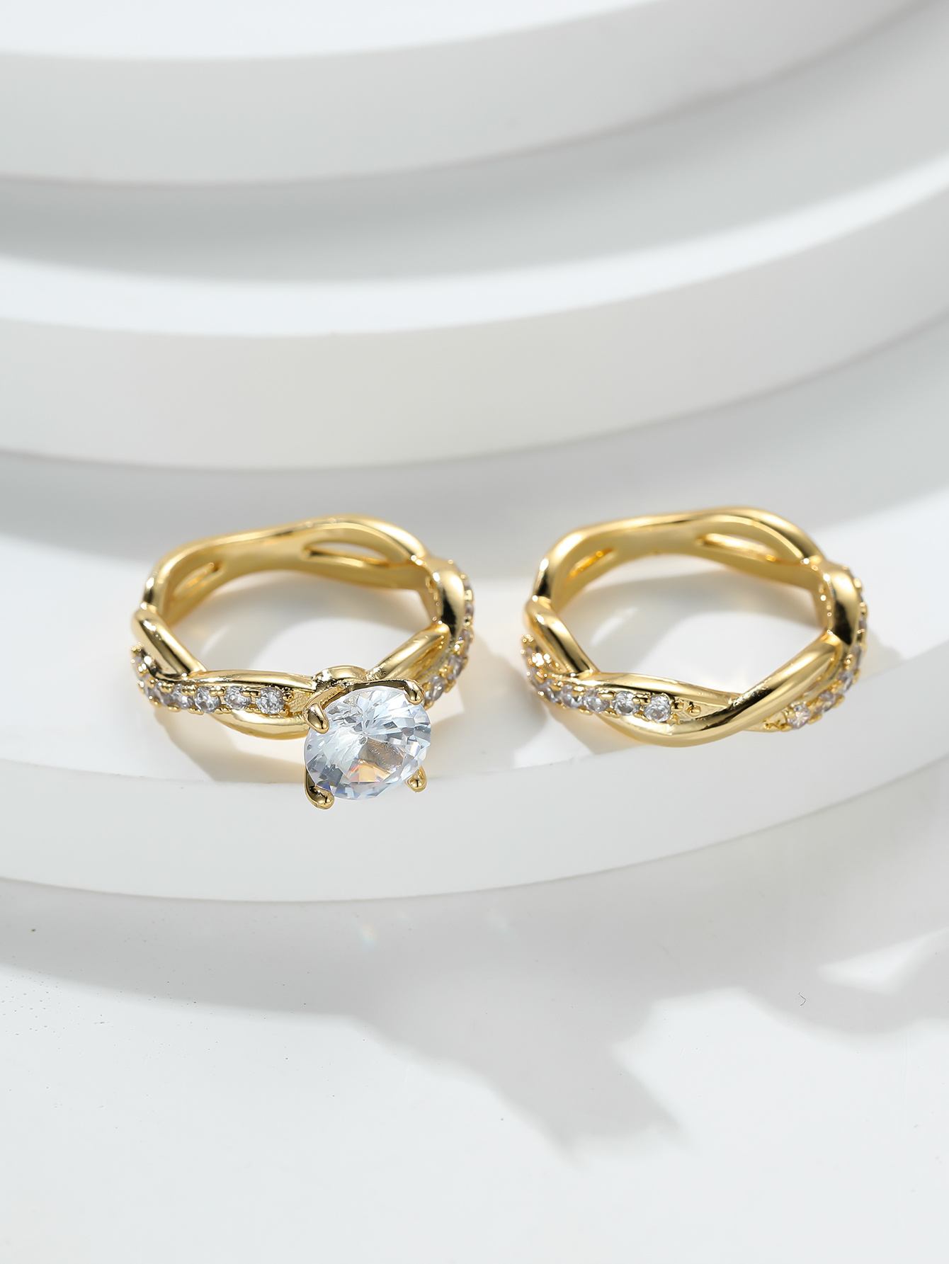 Vintage Cross Twisted Ring Set with Minimalist Twist and Engagement Wedding Rings