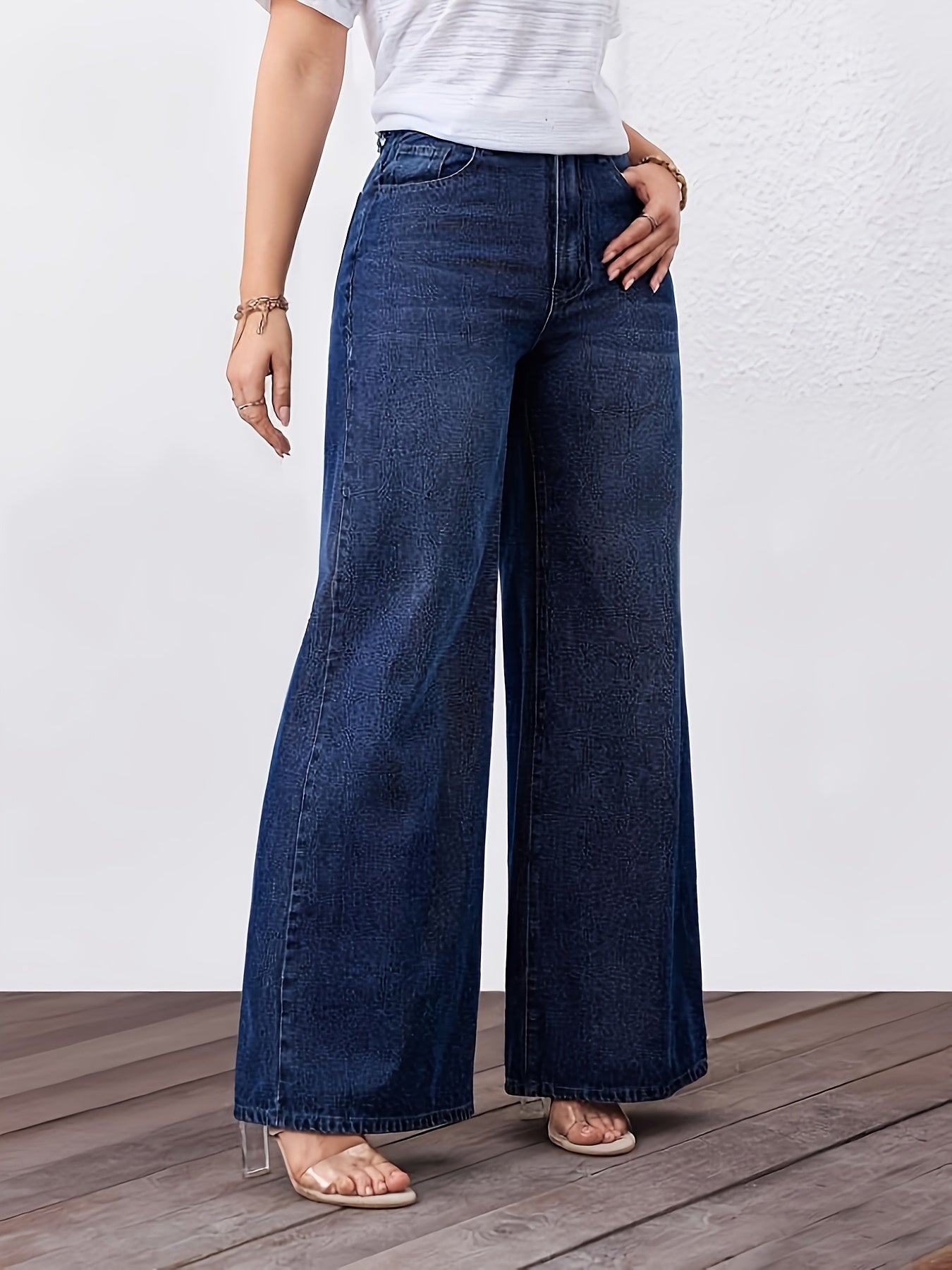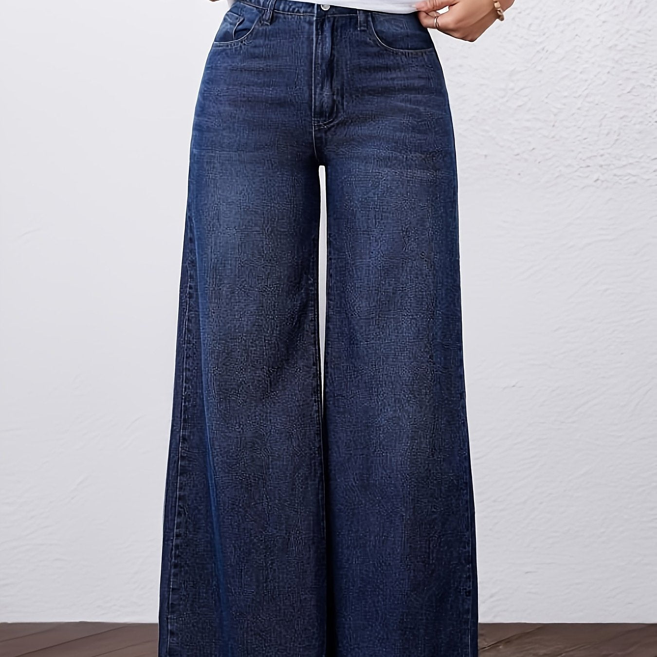 Jeans Femme Taille Haute Jambe Large Extensible Non Transparent Polyvalent Toute Saison
