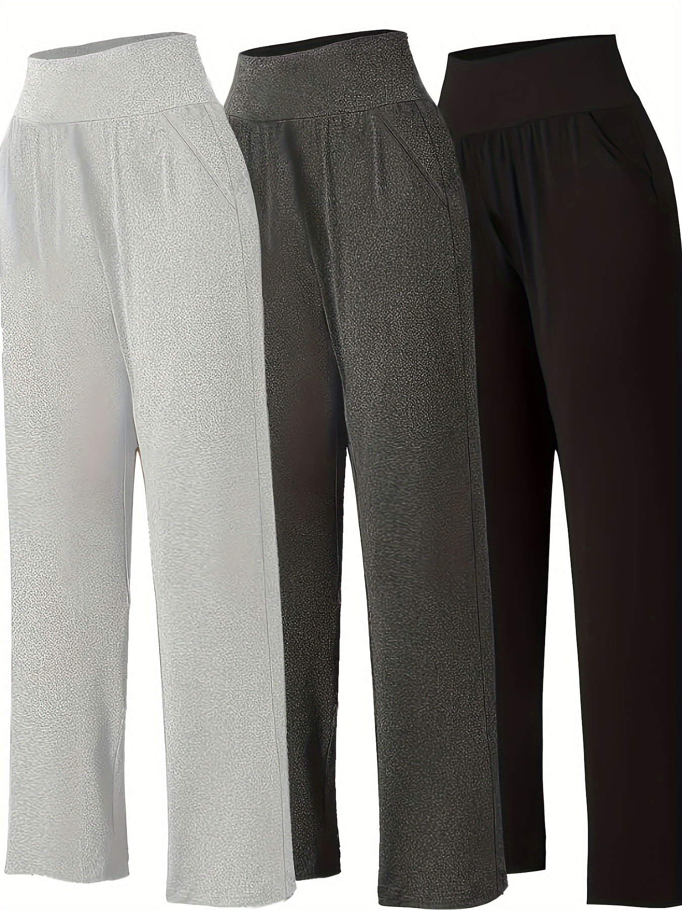 Pantalon Femme Grande Taille Décontracté – Taille Haute avec Poches, 3 Couleurs (Pourpre, Gris, Noir), Tous Saisons