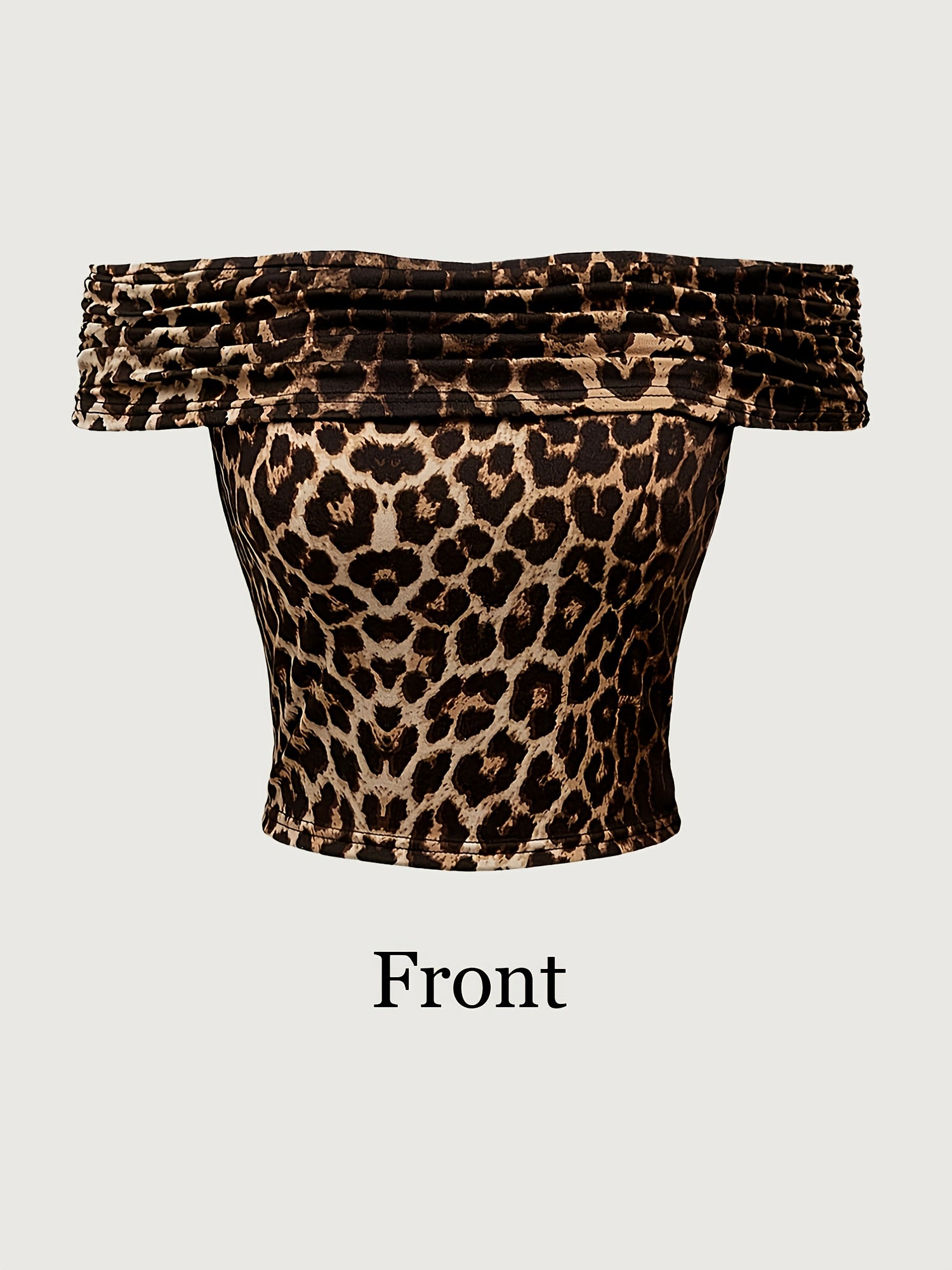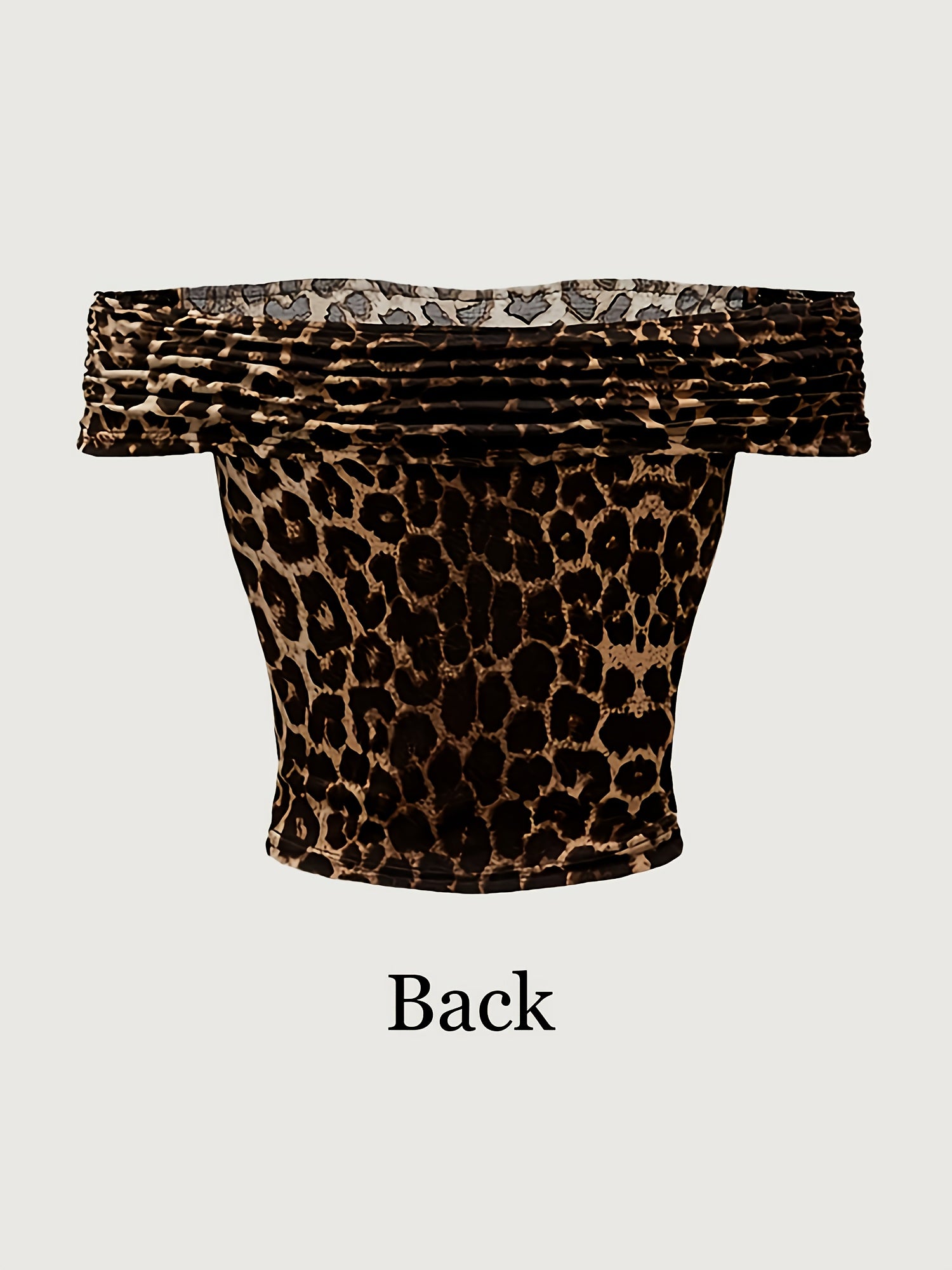 Top court à manches courtes pour femmes style punk Y2K motif léopard épaules dénudées sexy mode décontractée