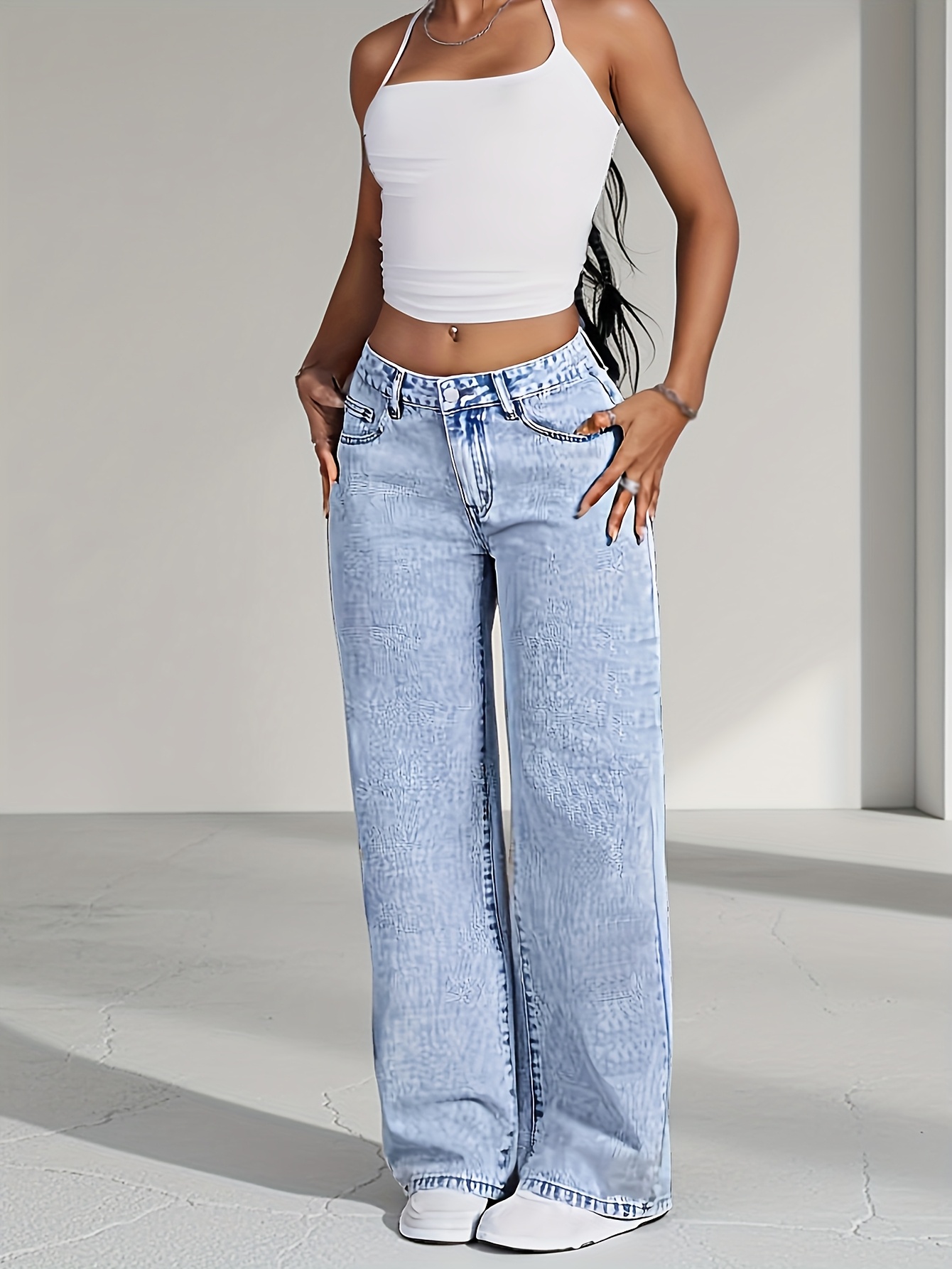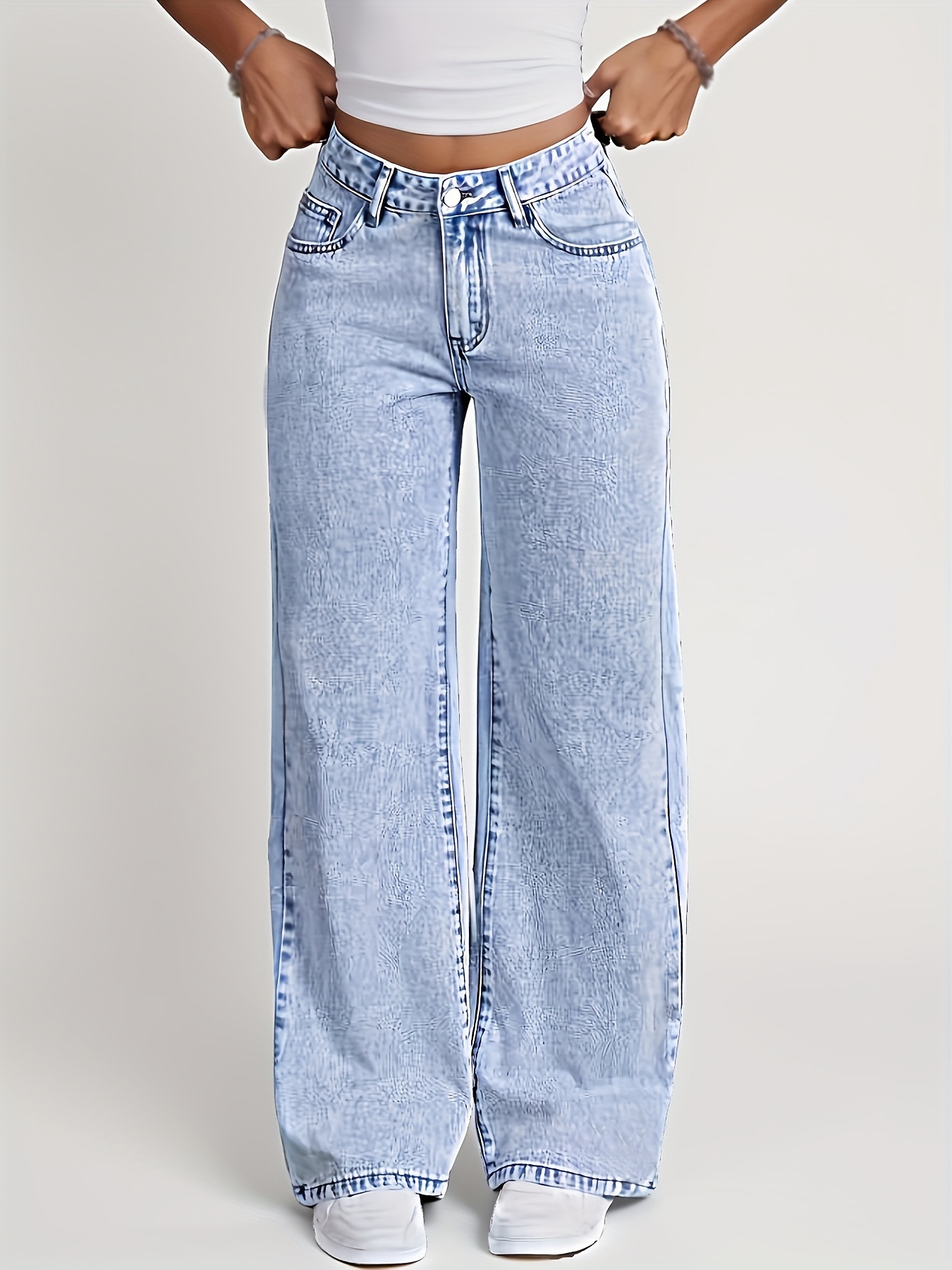 Jeans Femme Jambe Droite Snow-Wash Classique Bleu Gris Confortables Décontractés Toute Saison Flatteurs Élégants Automne Hiver