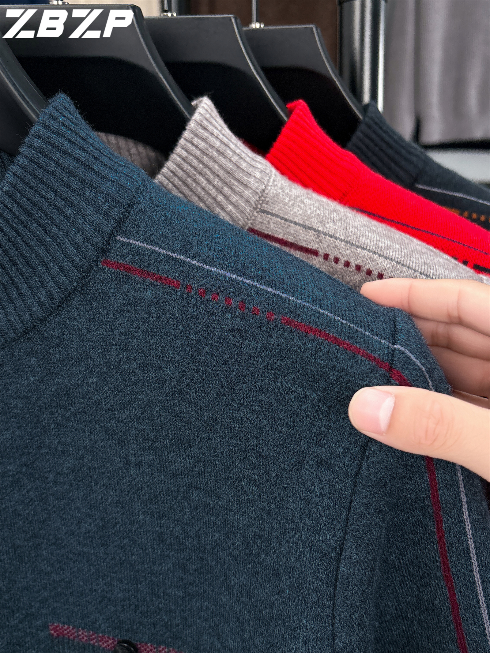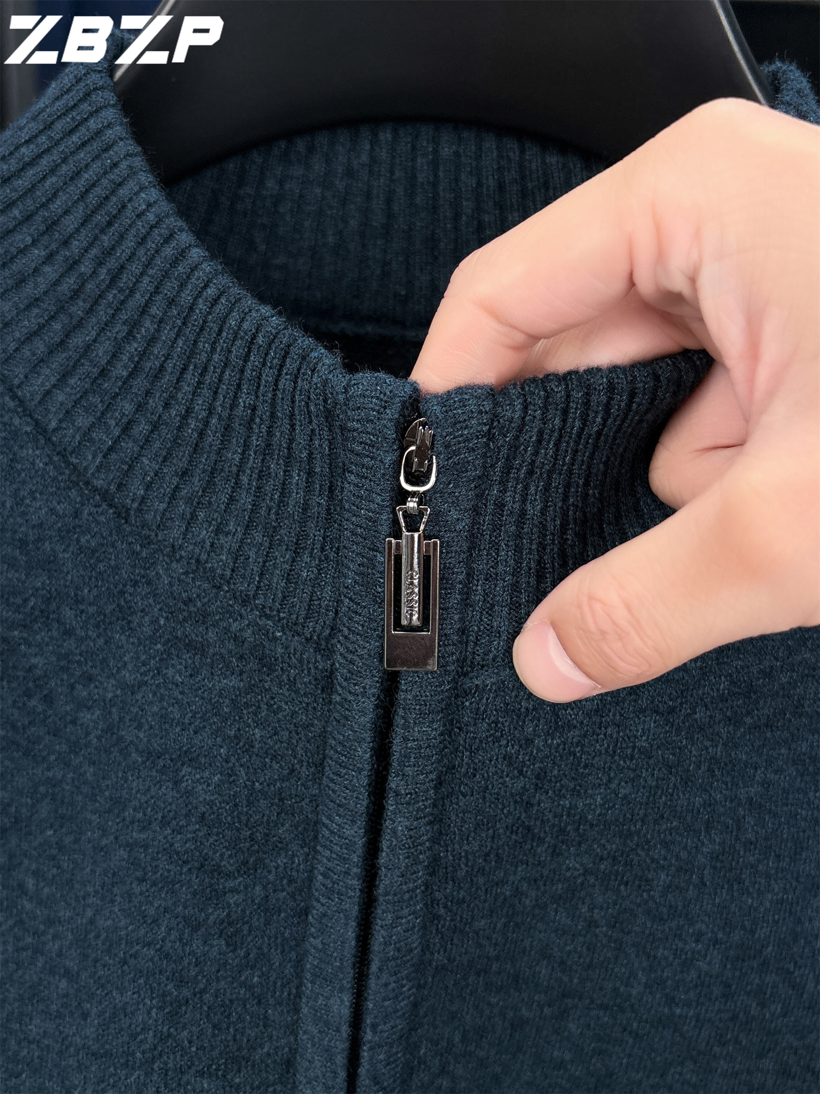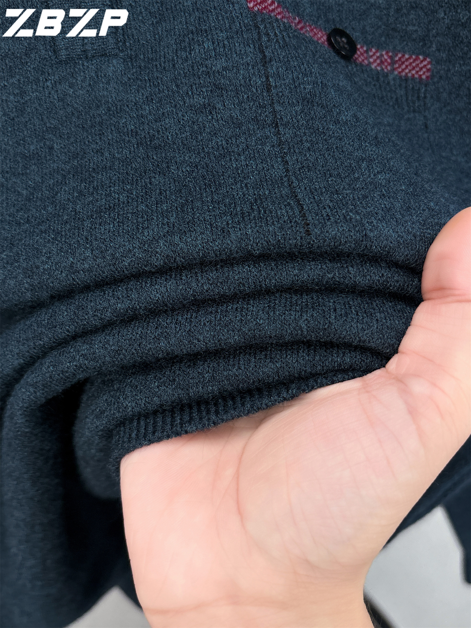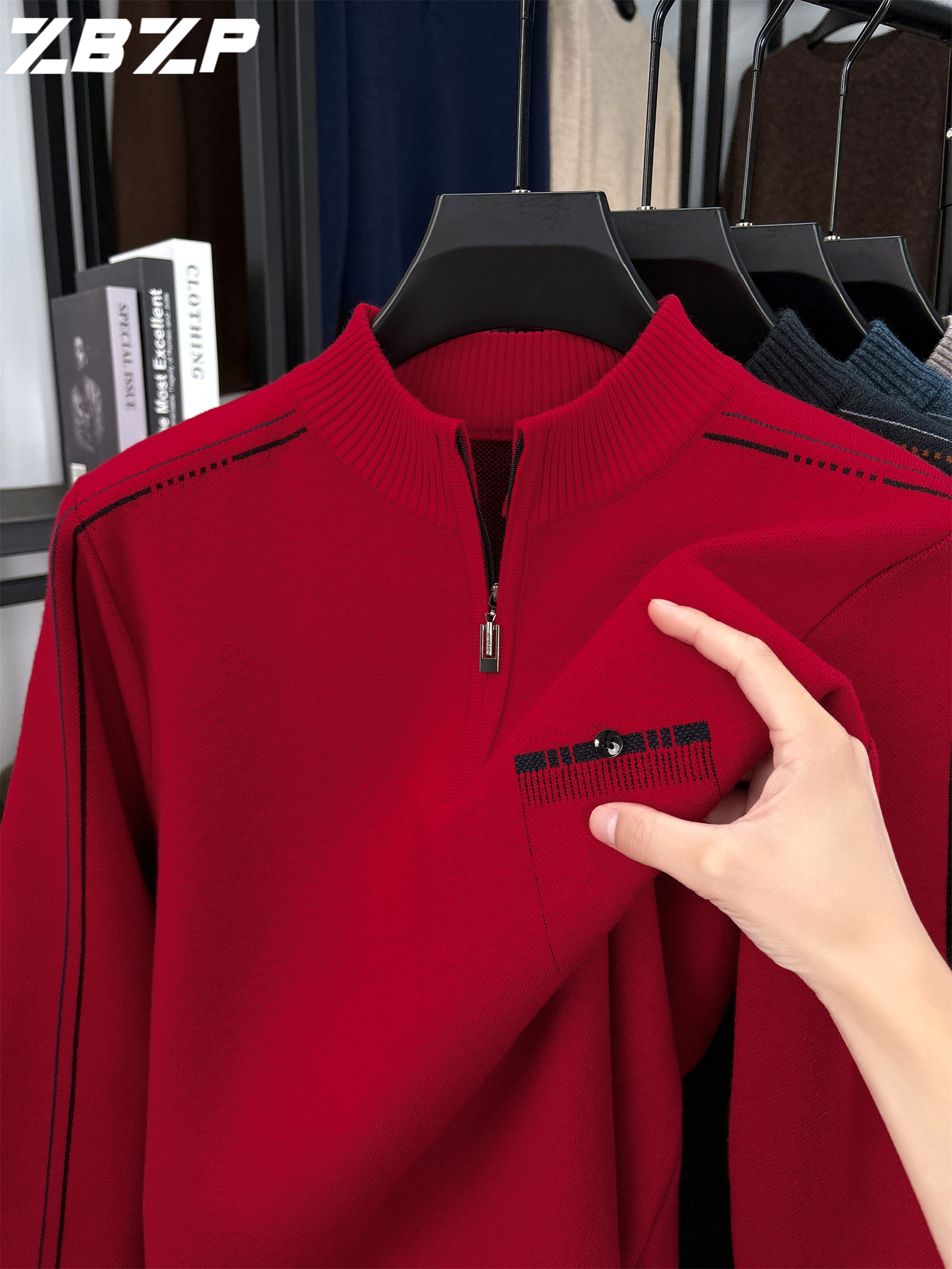 Men's Heavyweight Half-Zip Sweater - Stand Collar Zippered Winter Knit Sweater with Striped Collar & Back Logo, Dark Blue Casual Warm Pullover for Fall/Winter, Versatile Layering for Office & Casual Attire