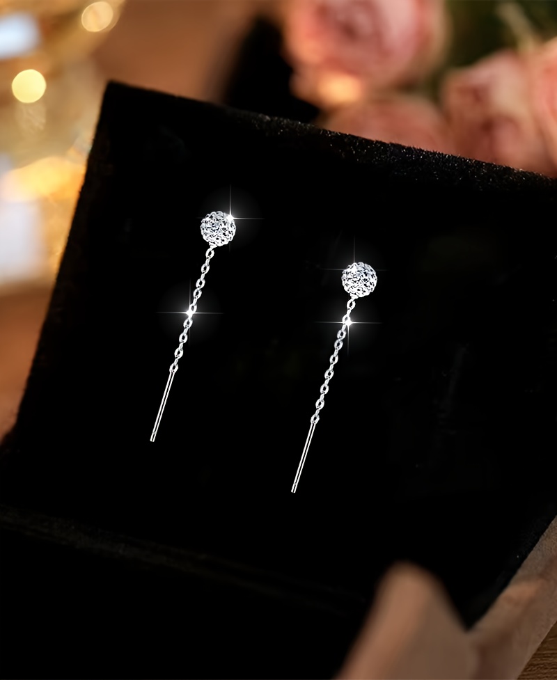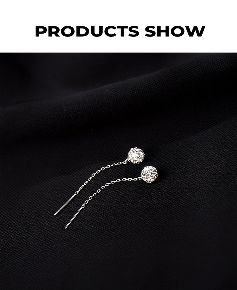 1 paire de boucles d’oreilles, argent sterling S925, plaqué argent ultra-brillant avec zirconia synthétique et zirconia cubique synthétique en forme de boule