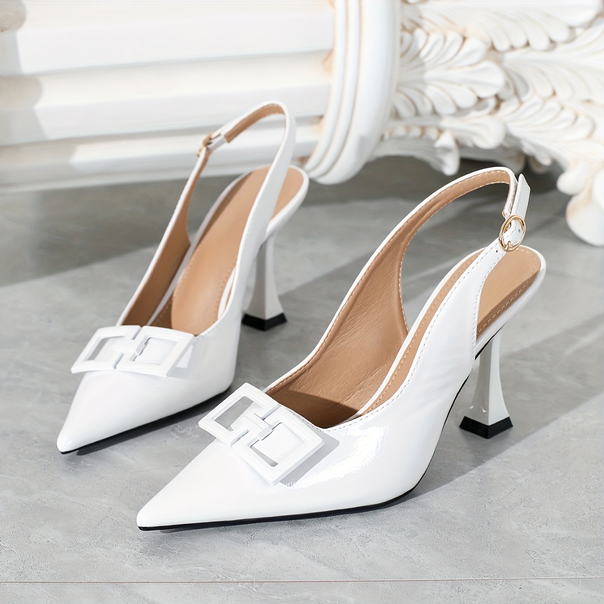 Escarpins Élégants Rouges à Talons Aiguilles pour Femme – Bout Pointu, Décor Boucle Métallique, Tige Vernie Synthétique, Parfaits pour Mariages, Soirées et Tenues Décontractées