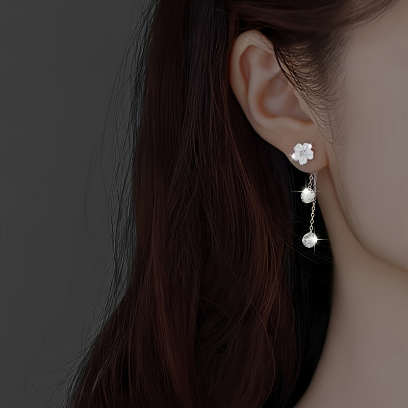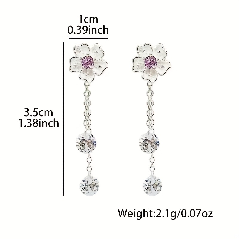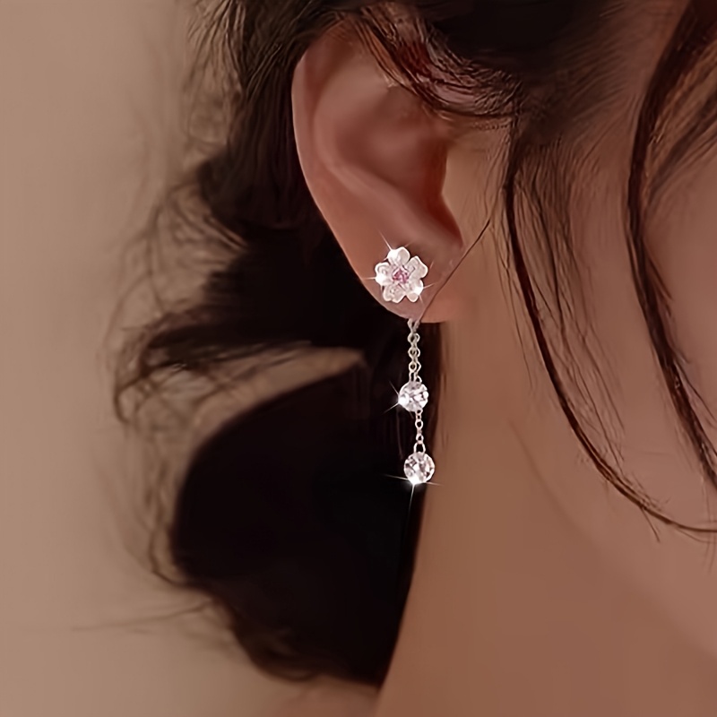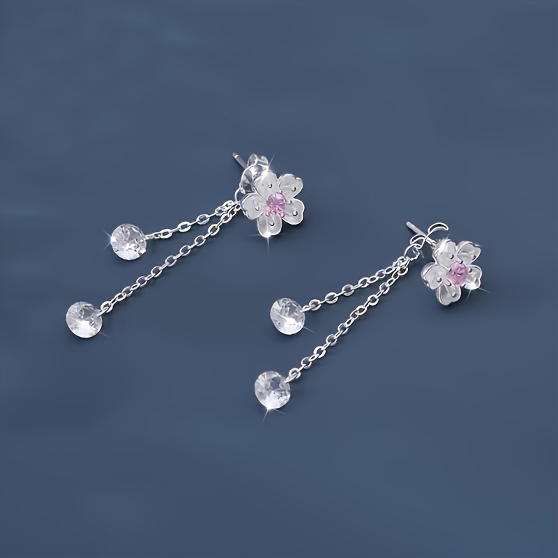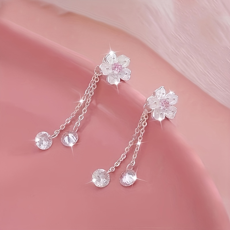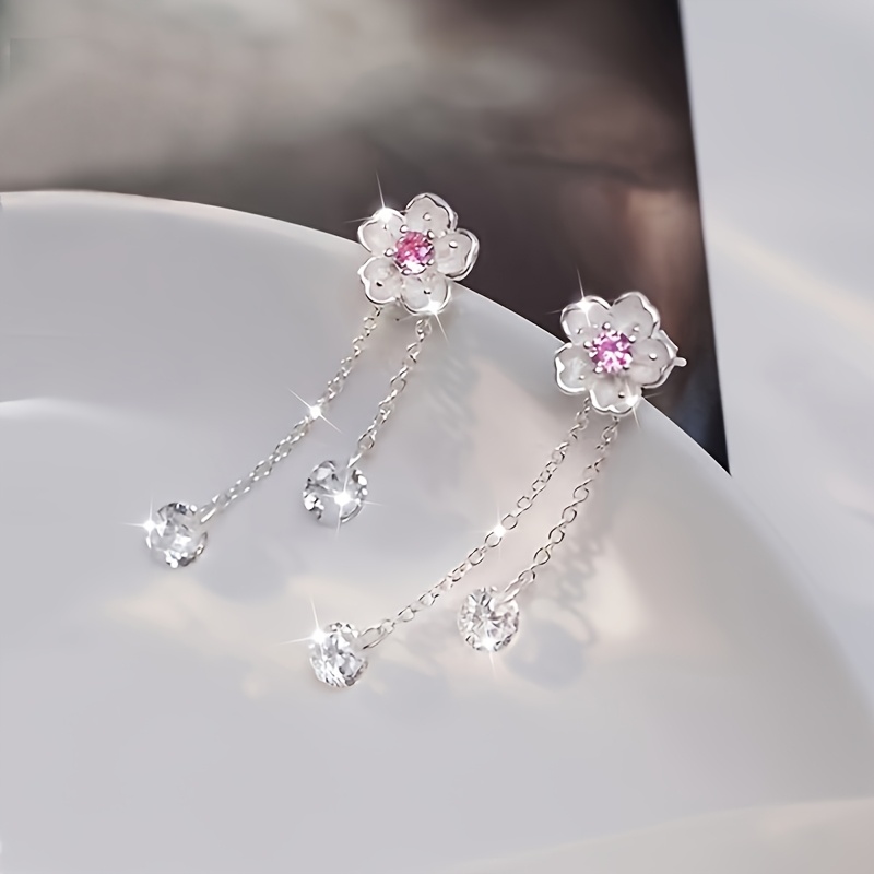 1 paire de boucles d’oreilles pour femmes, élégantes et classiques, motif fleur de cerisier avec pampilles, plaqué argent 925, idéal cadeau pour anniversaires, mariages, rentrée scolaire, Saint-Valentin, printemps/été.