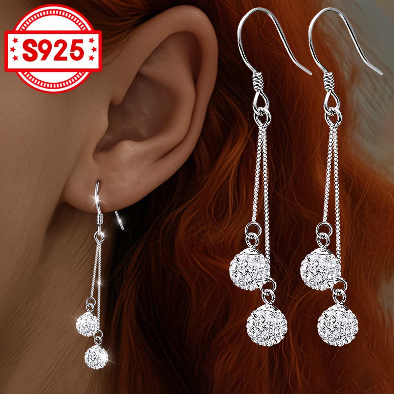 1 paire boucles d’oreilles pendantes pour femmes avec incrustation de 2 perles shamballa design à pompon blingbling en argent S925 accessoire élégant pour un usage quotidien cadeaux festifs mariages fêtes et banquets hypoallergénique