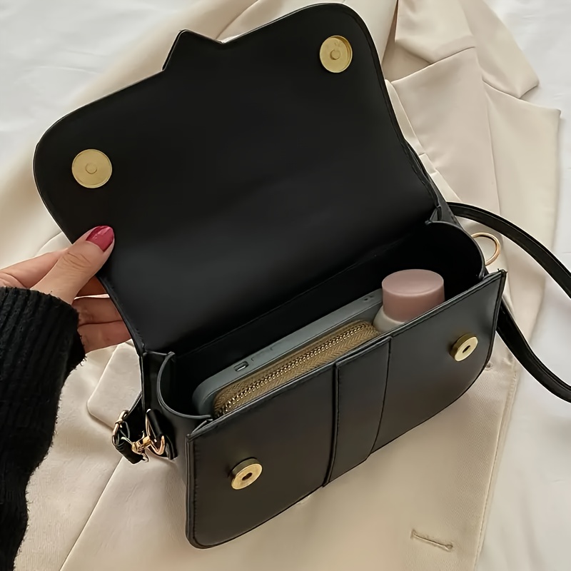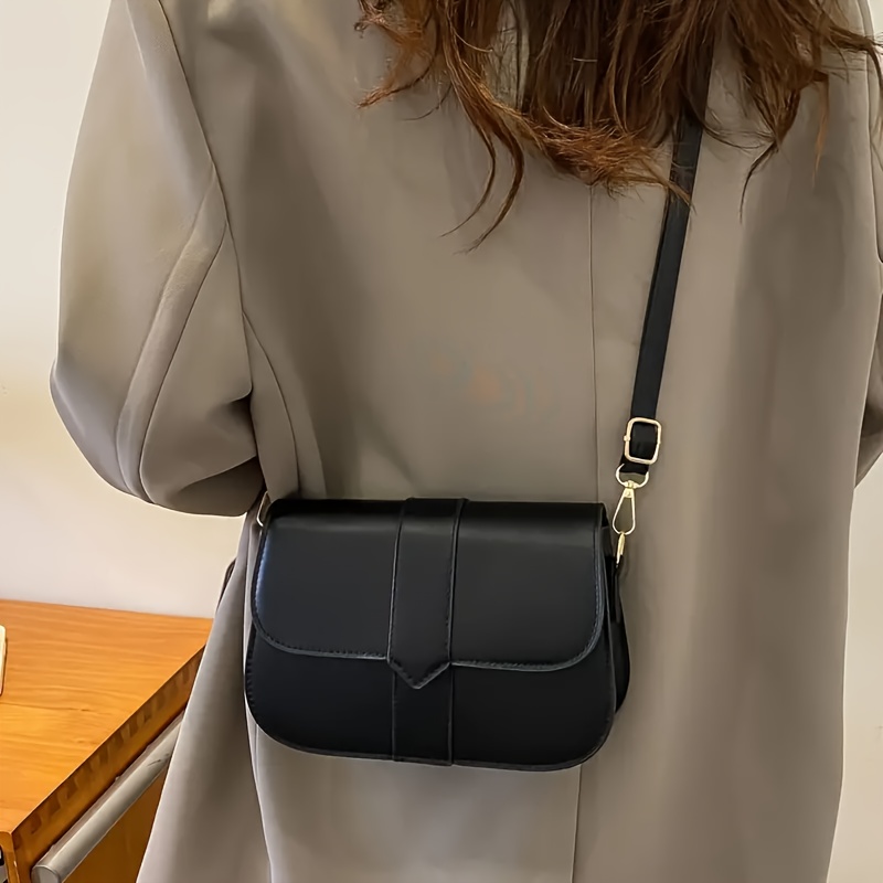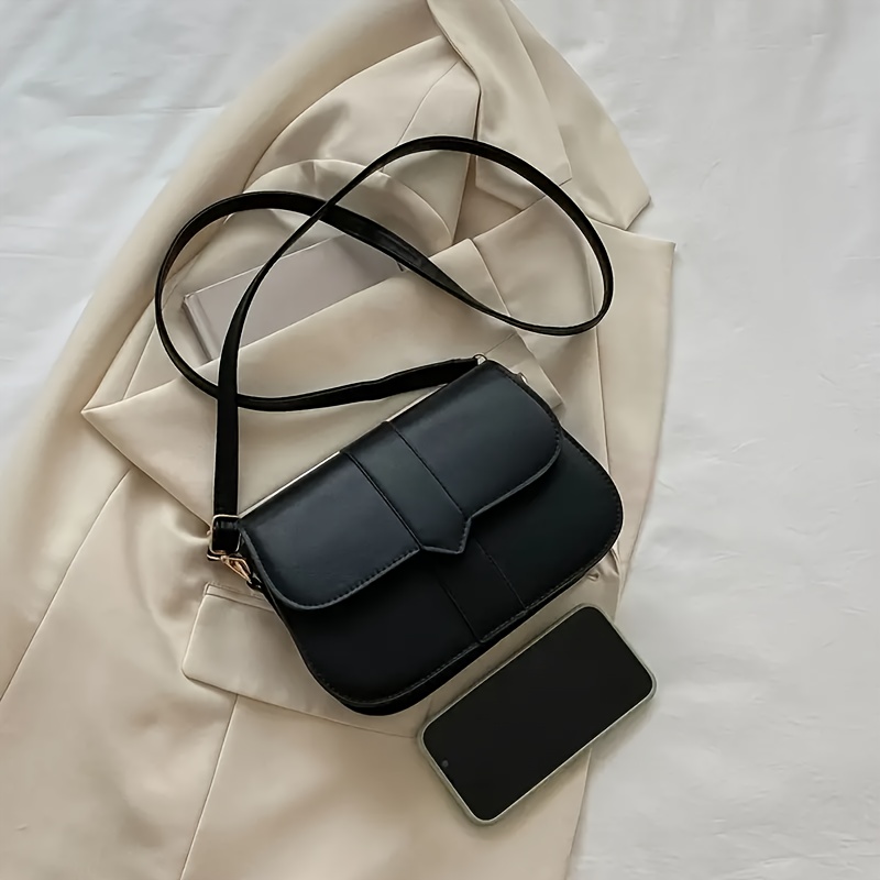Sac bandoulière femme noir – simili cuir, lanière réglable, rabat avec boucle