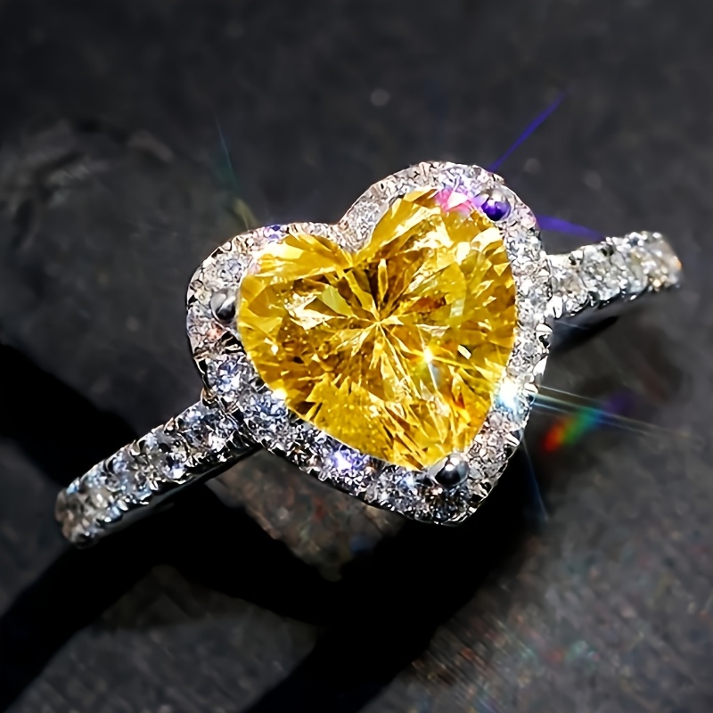 1pc Women's Engagement Ring, Exquisite and Elegant 3-Prong Synthetic Synthetic Zirconia Heart Ring, Wedding Party Proposal Engagement Ring Accessory, Valentine's Day Gift