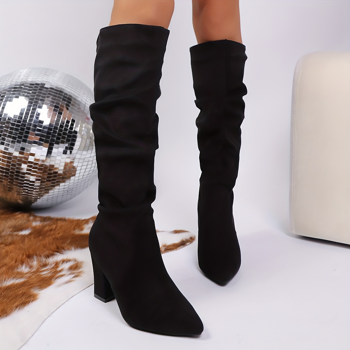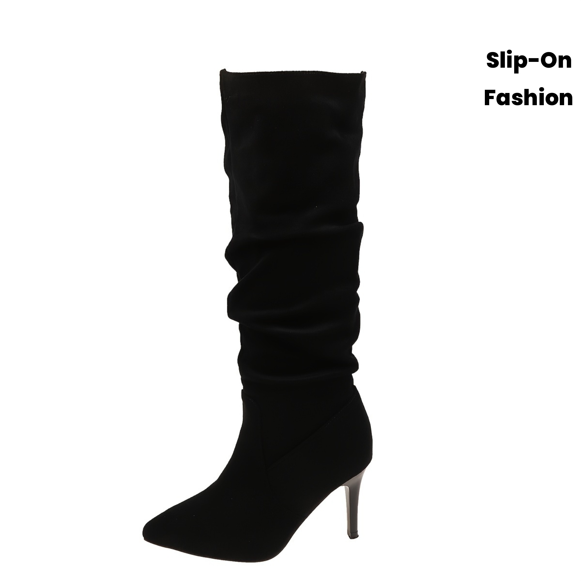 Bottes Sexy Femme à Talons Aiguilles – Montantes au Genou avec Effet Froncé, Dessus Tissu Couleur Unie, Bout Pointu, Semelle en Caoutchouc, Doublure et Semelle Intérieure en PU, Enfilage Facile, Bottines Décontractées Automne Toute Saison