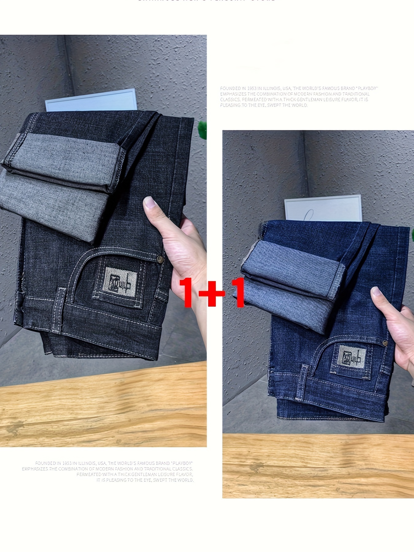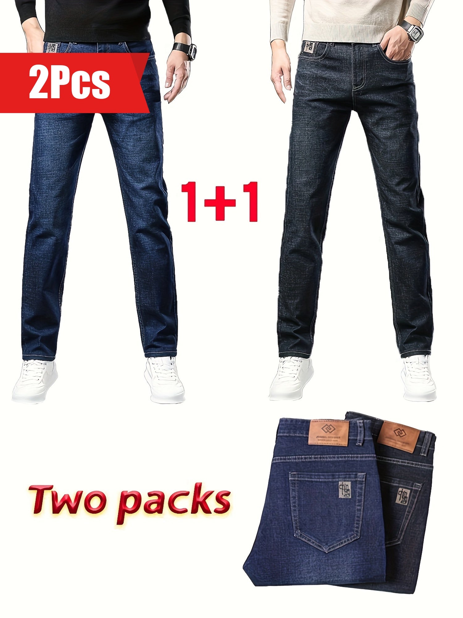 2pcs Jeans Homme Classiques – Regular Fit, Jambe Droite, Léger Stretch, Tout Saison