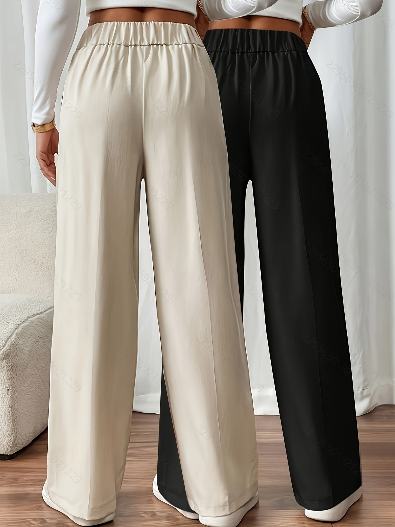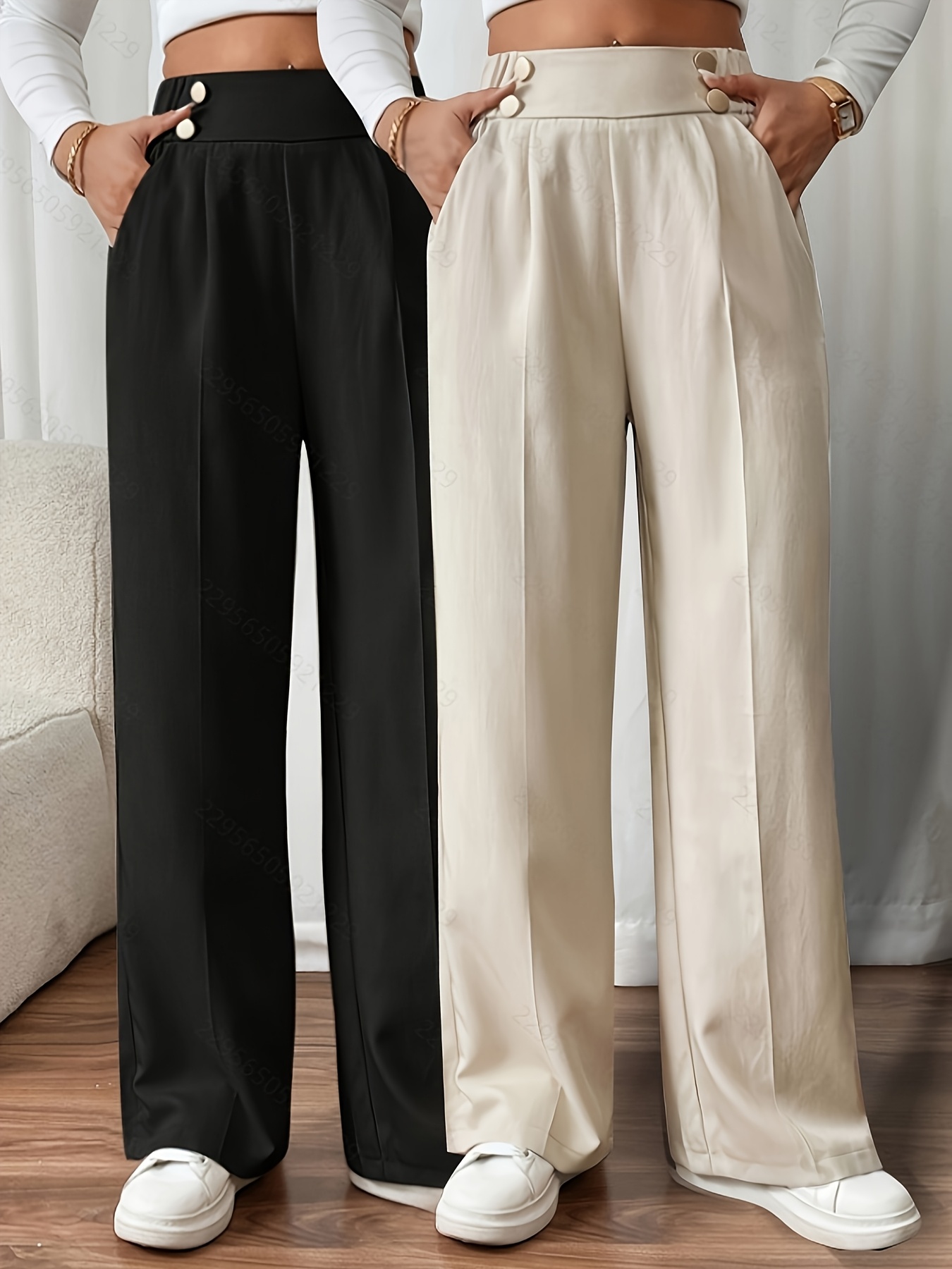 Lot de 2 Pantalons Femme – Jambe Large Évasée, Taille Haute Élastique, Boutons Doubles, Élégant et Décontracté, Bureau et Quotidien