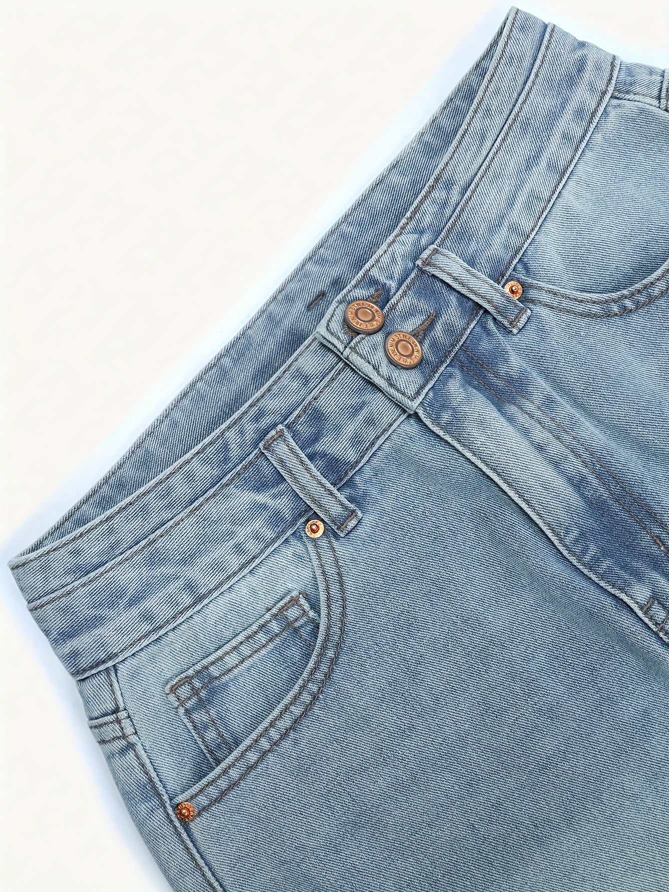 Jeans femmes– coupe décontractée, taille élastique, patchwork à double bouton, style baggy, tailles plus, bleu délavé et kaki