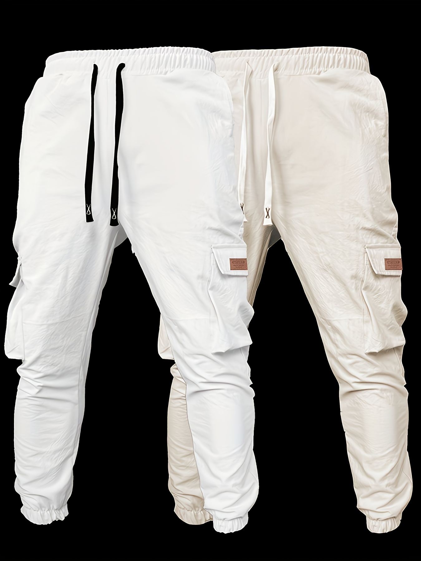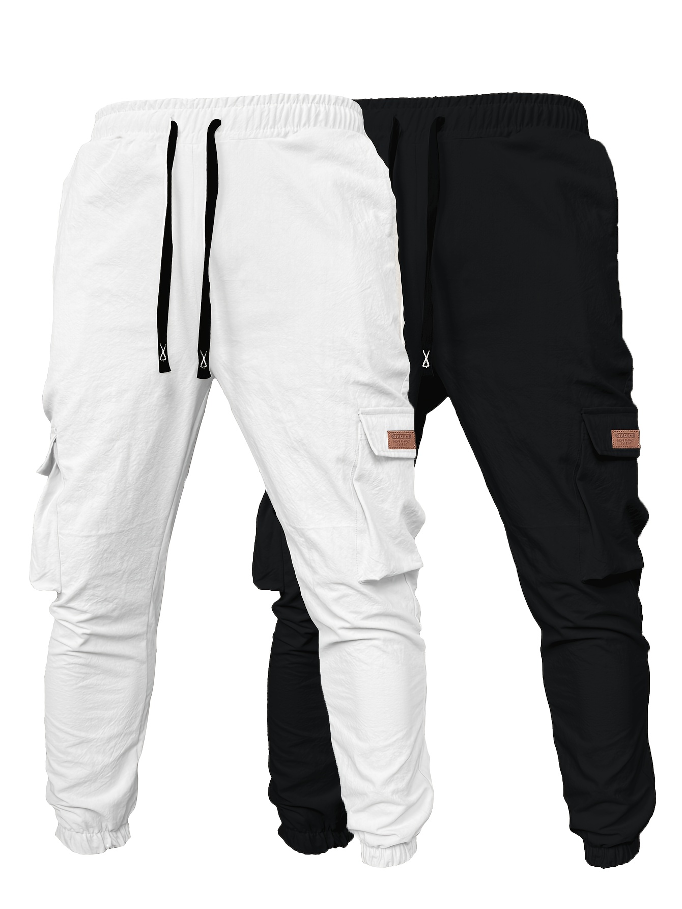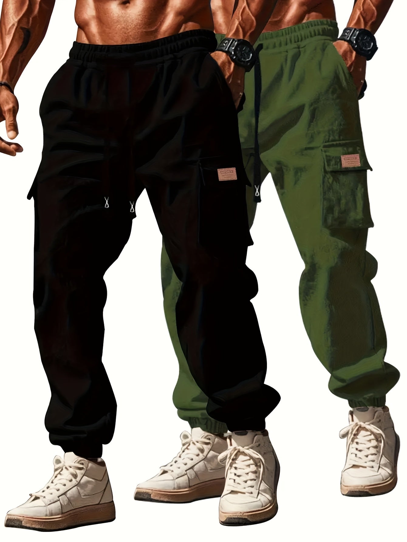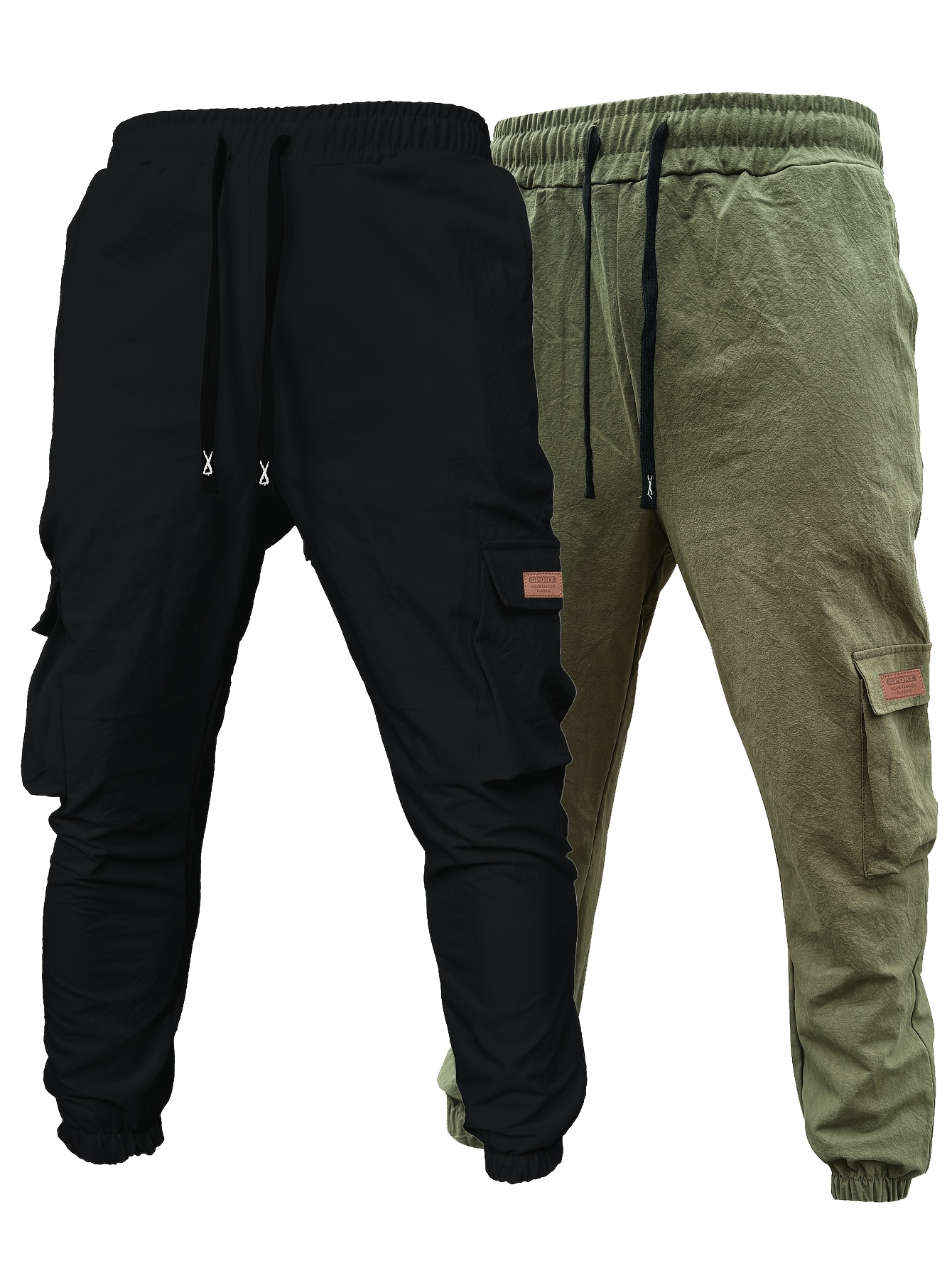 Pantalons de travail robustes pour homme (2 pièces) – cargos complets à multiples poches utilitaires, taille à cordon, coton non extensible, coupe ample (noir et vert olive)