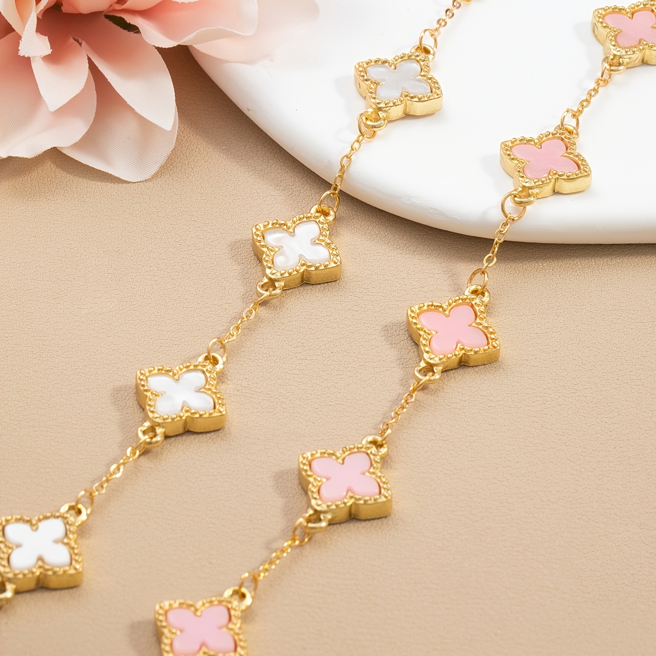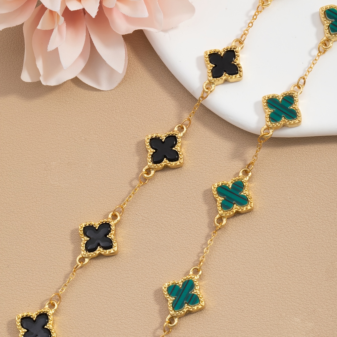 Lot de 2 Bracelets Chanceux Trèfle – Simples et Stylés, Accompagnés de Bracelets Multi-Couches Blanc et Noir, Idéal pour le Quotidien, Cérémonies de Remise de Diplômes, Rentrée Scolaire, Saint-Valentin, Fête des Mères et Cadeaux