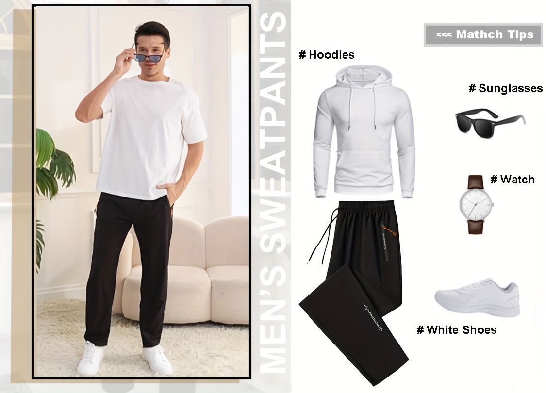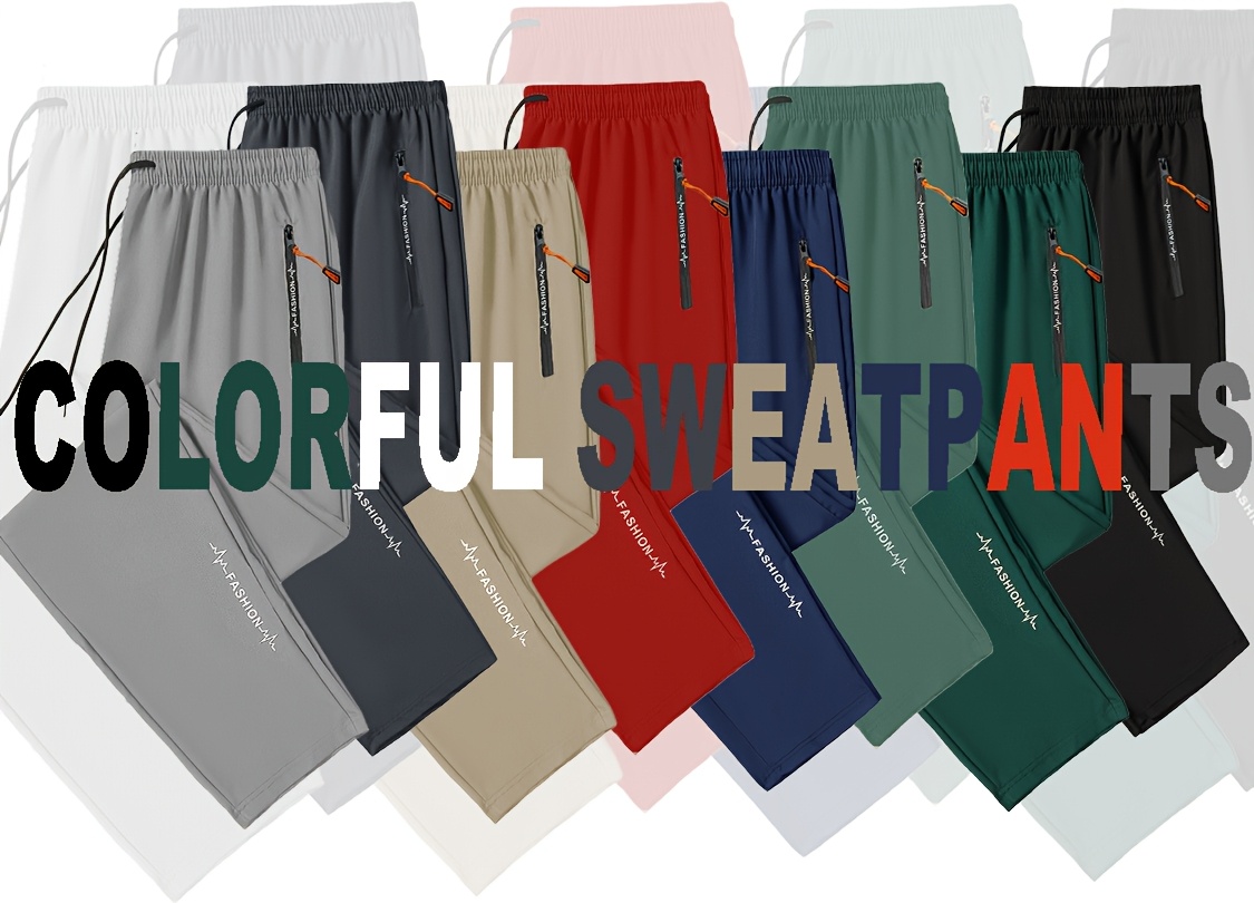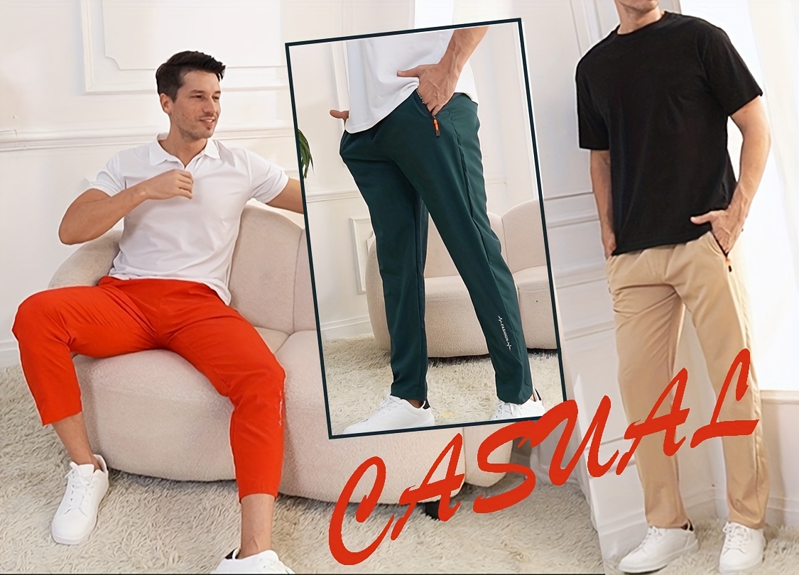3pcs Pantalons Sport Homme – Tout Saison, Cordon, Poche Zippée, Olive, Gym & Casual
