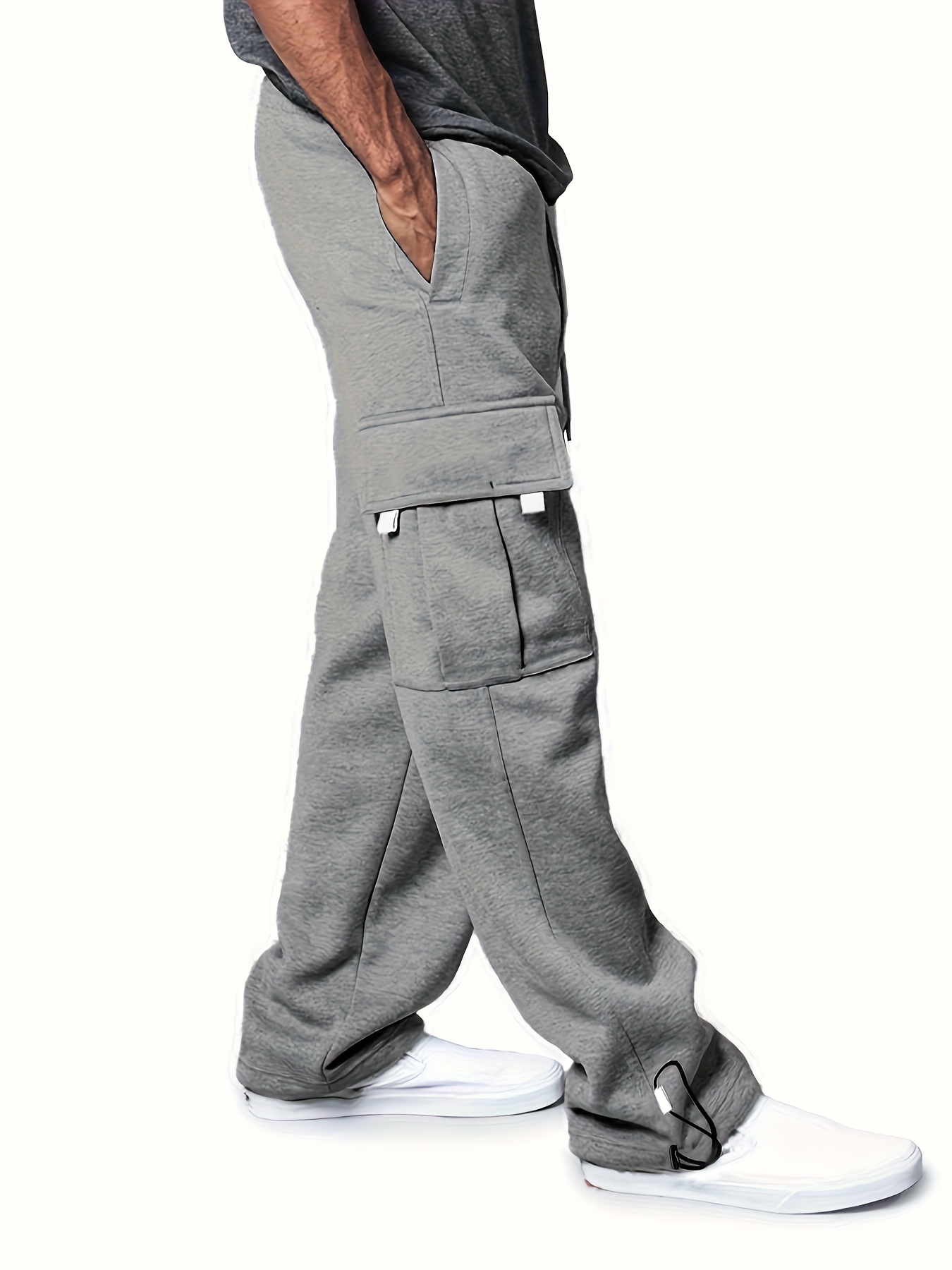 Pantalons cargo décontractés pour homme (3 pièces) – style streetwear outdoor, multi-poches, poignets élastiques avec cordon, polyester 100 %, couleur unie, coupe régulière, taille mi-haute, jambe droite