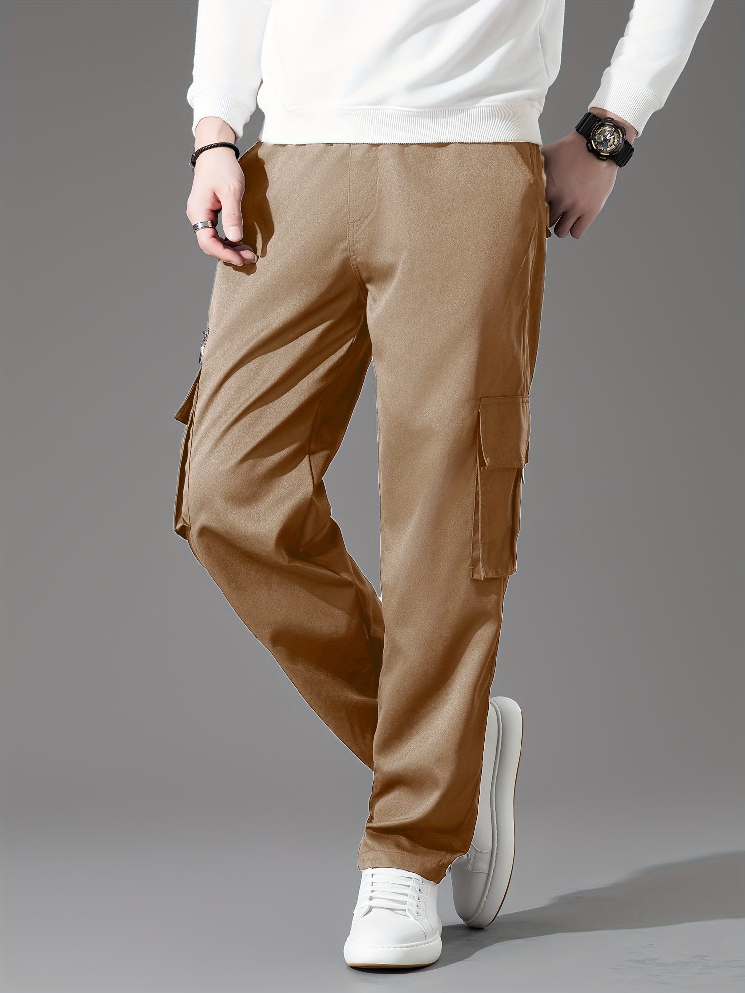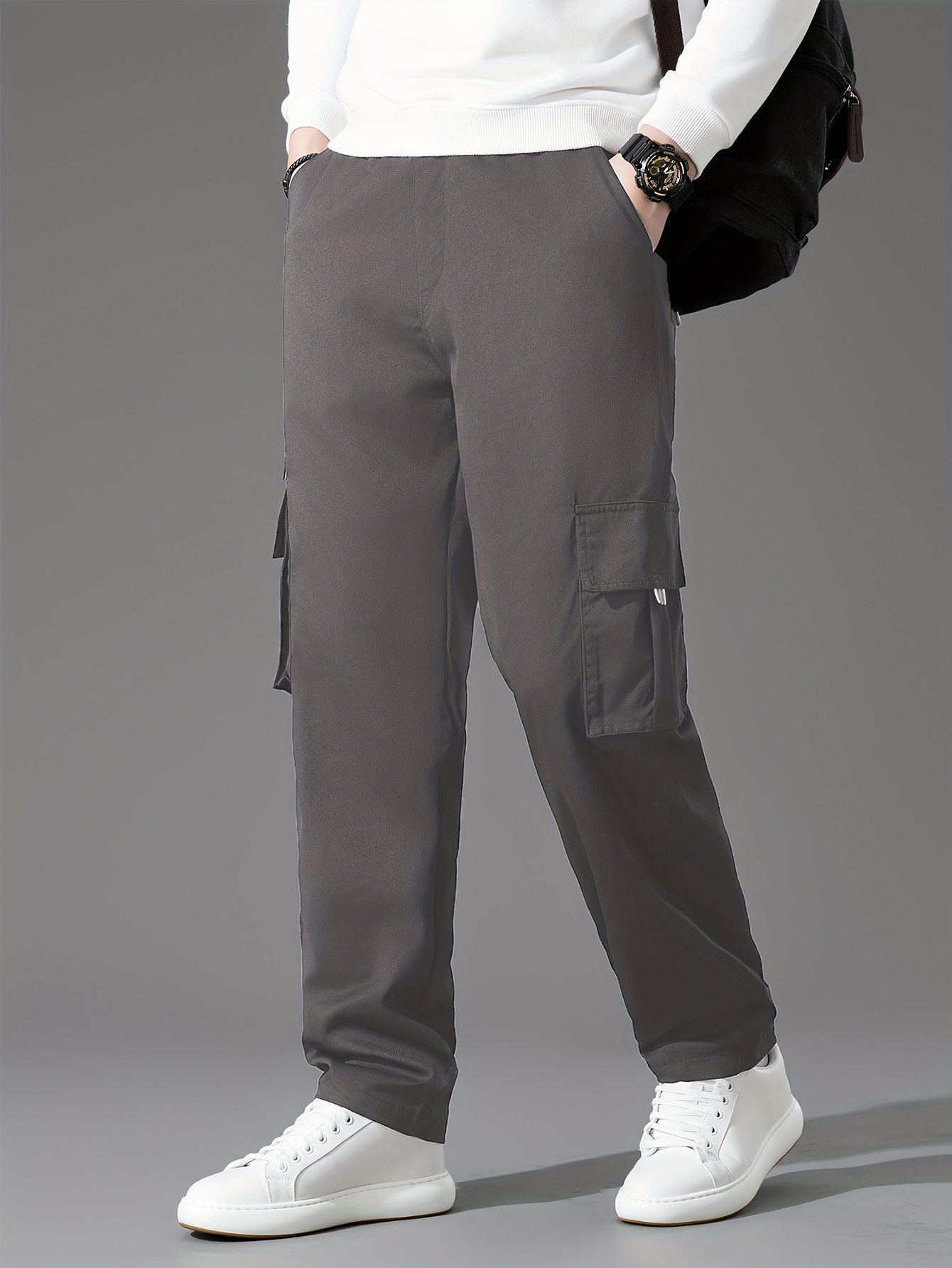 3pcs Pantalons Cargo Homme – Casual, Multipoches, Jambe Droite, Polyester, Regular Fit