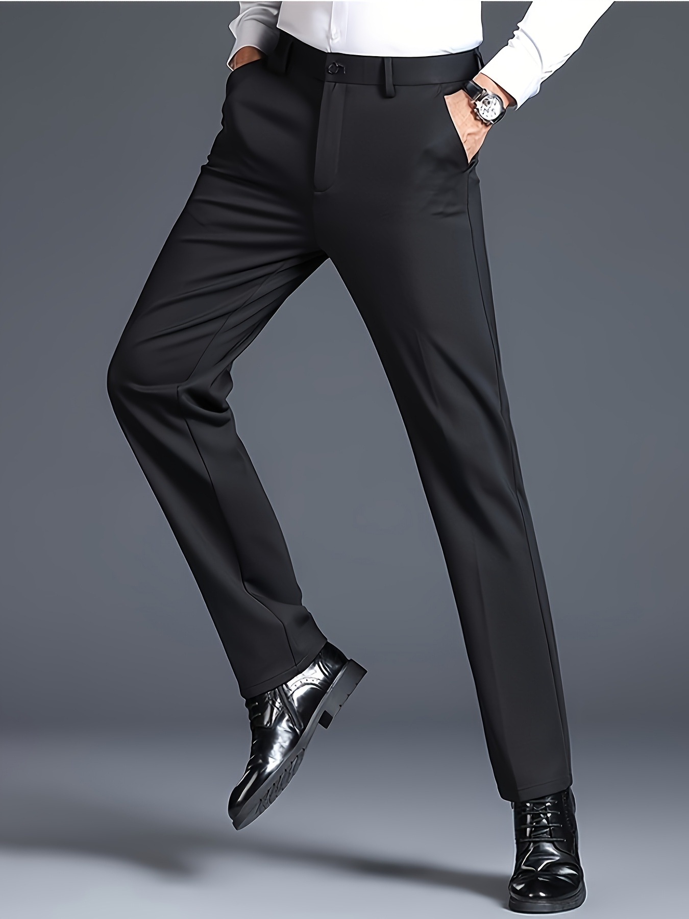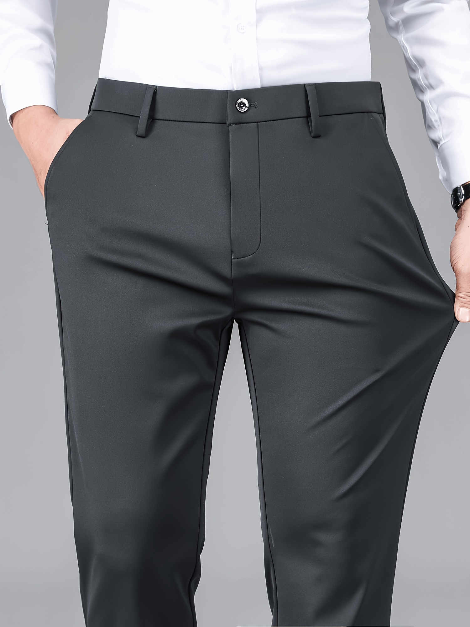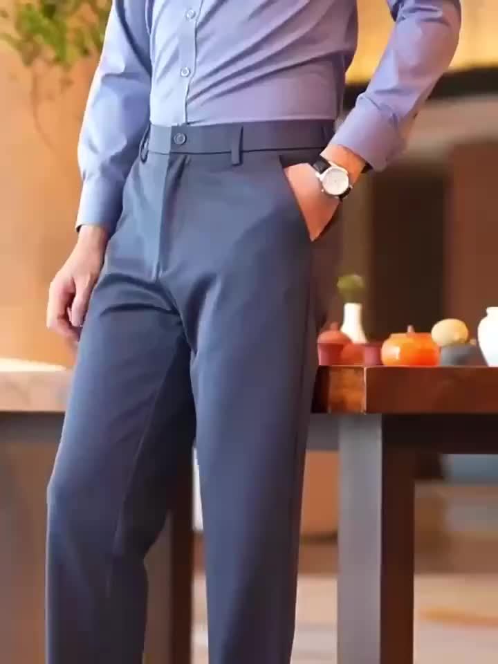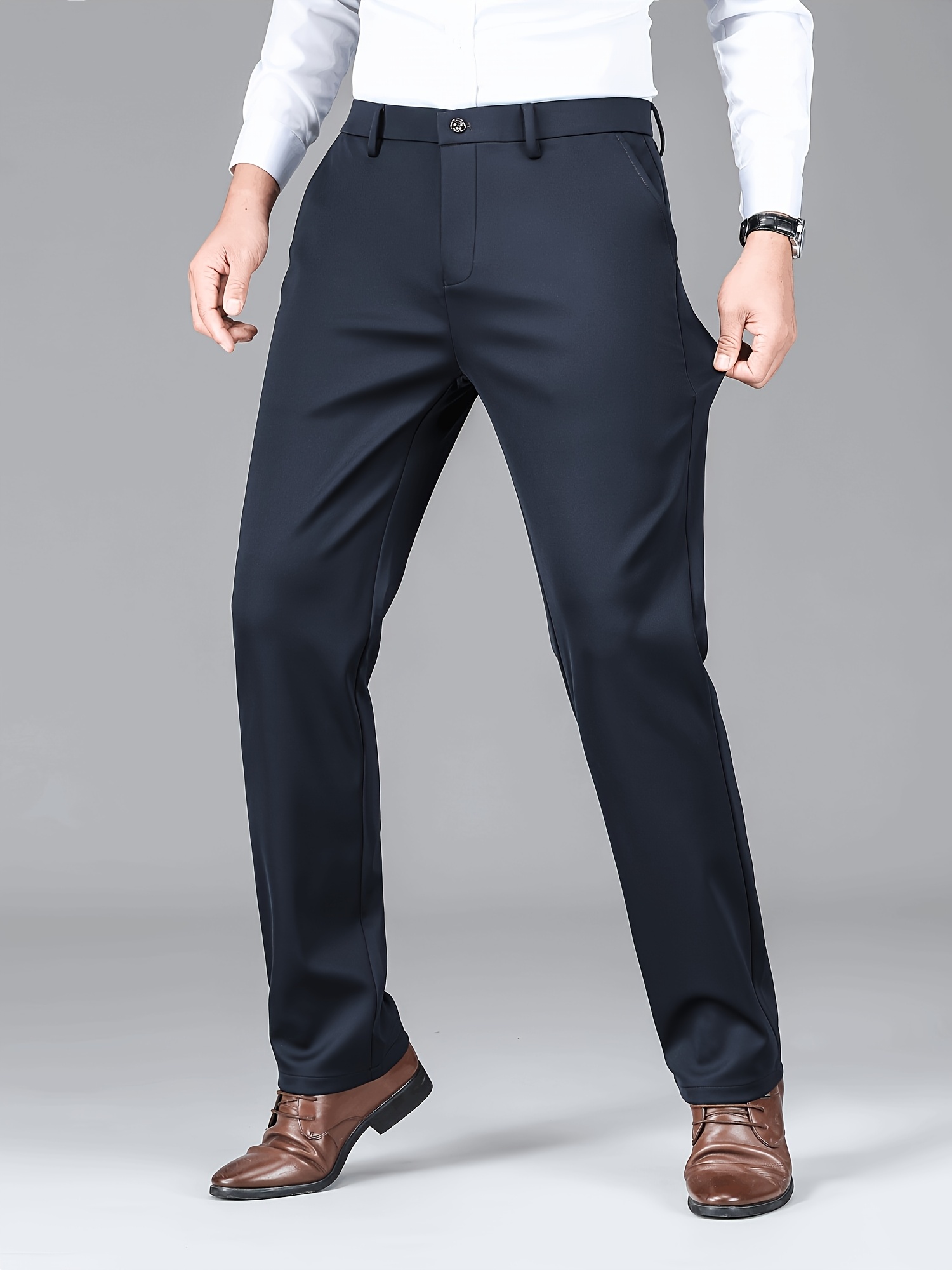 3pcs Pantalons Homme Business Casual – Léger, Stretch, Motif Brodé, Noir/Gris/Bleu Marine