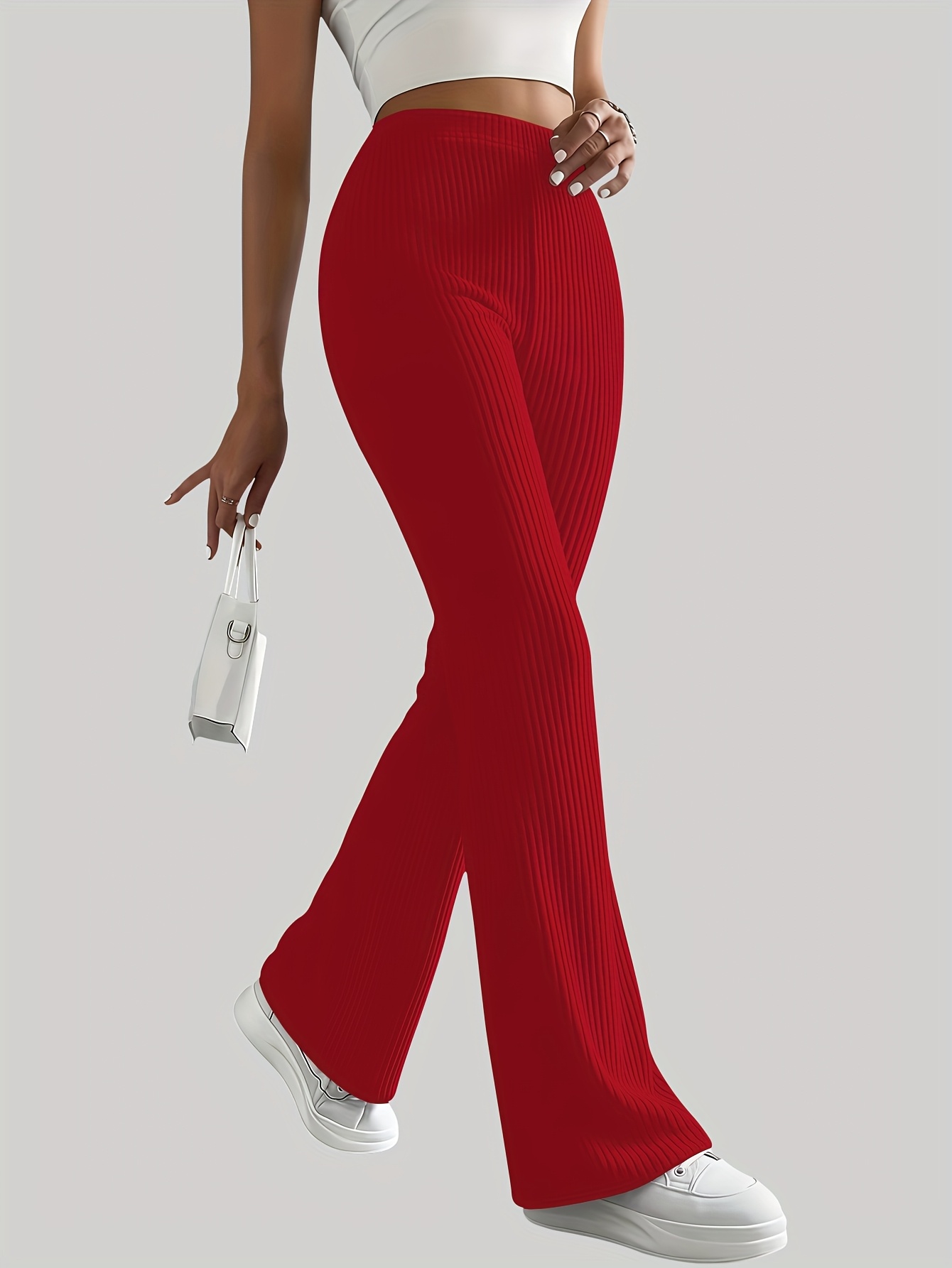 Lot de 3 Pantalons Femme Jambe Large – Taille Élastique avec Ceinture et Ourlets, Couleurs Bleu/Rouge/Noir, Tous Saisons, Bureau et Décontracté