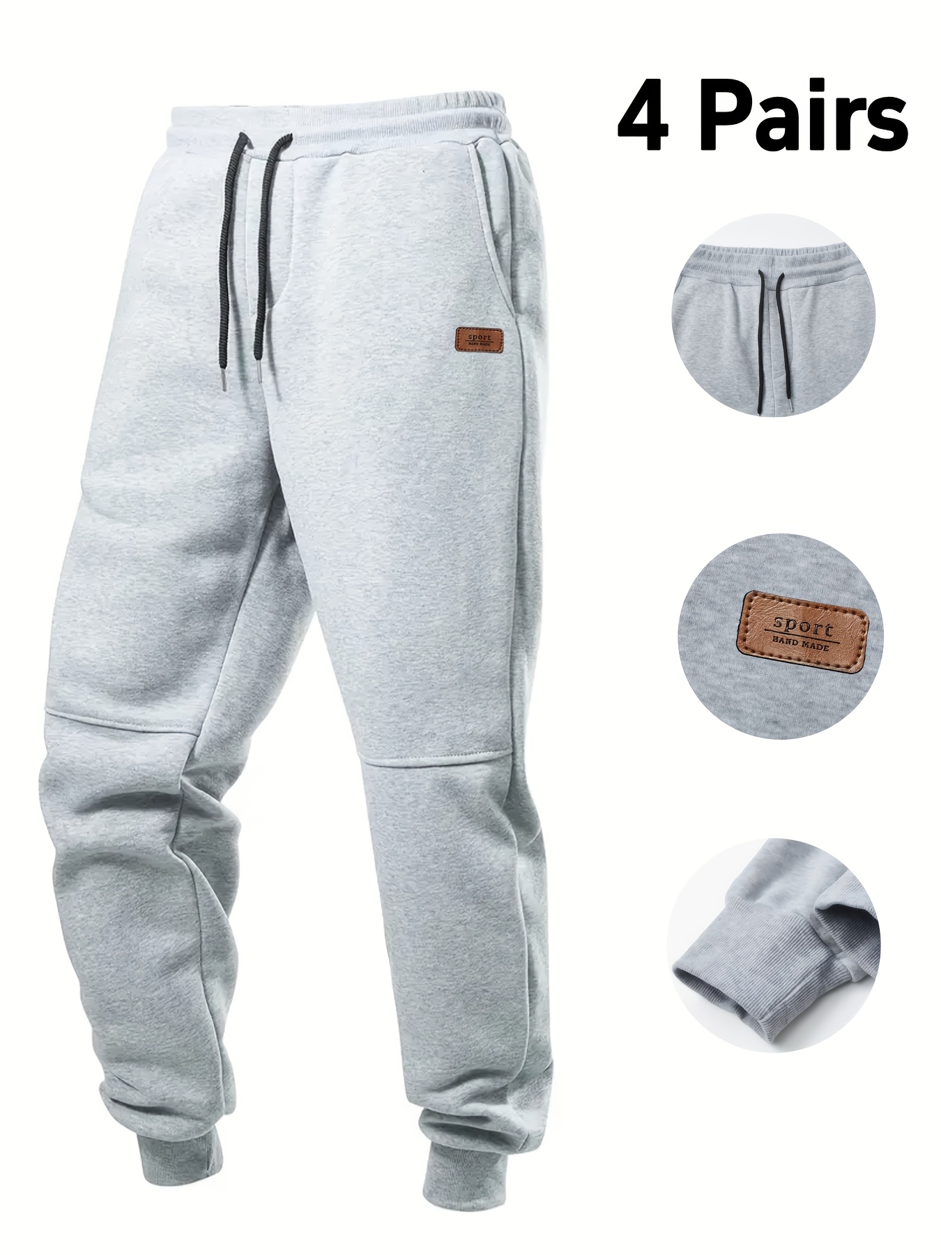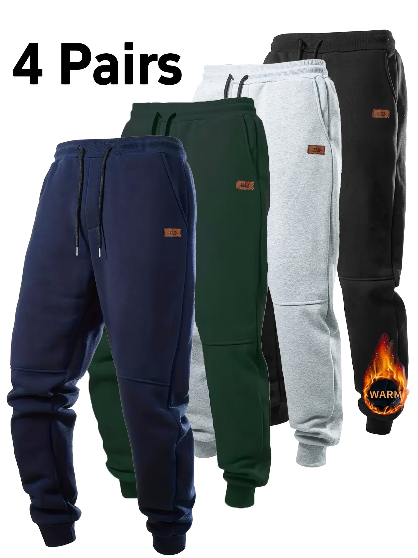 4pcs Pantalons Sport Homme – Automne/Hiver, Cordon, Tissu Élastique, Doublure Chaude, Casual