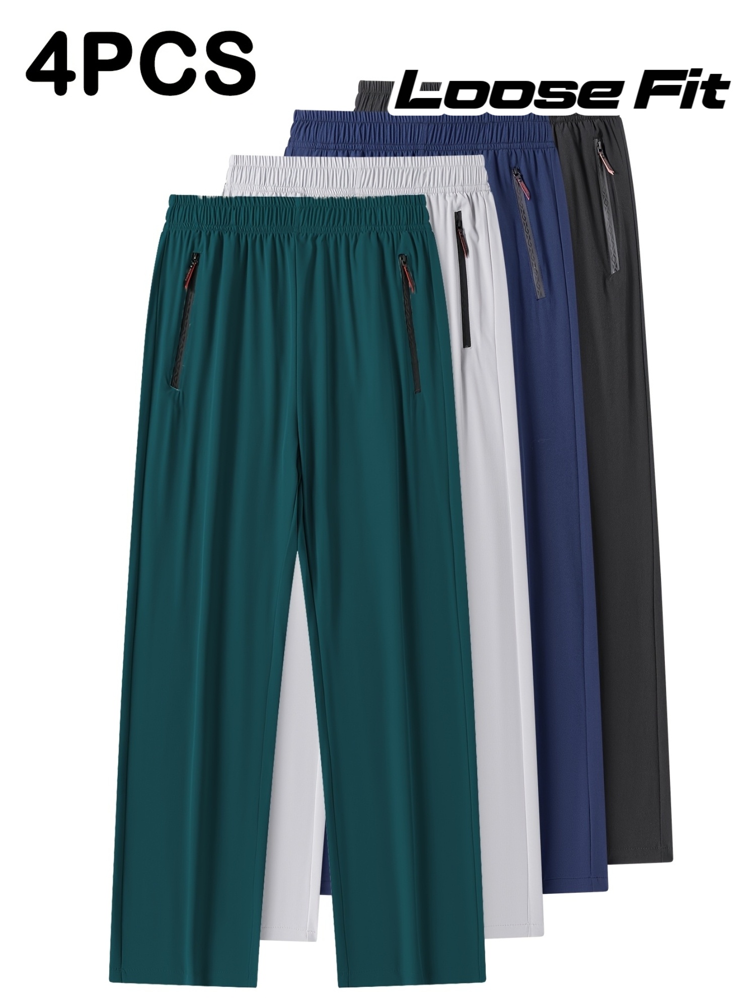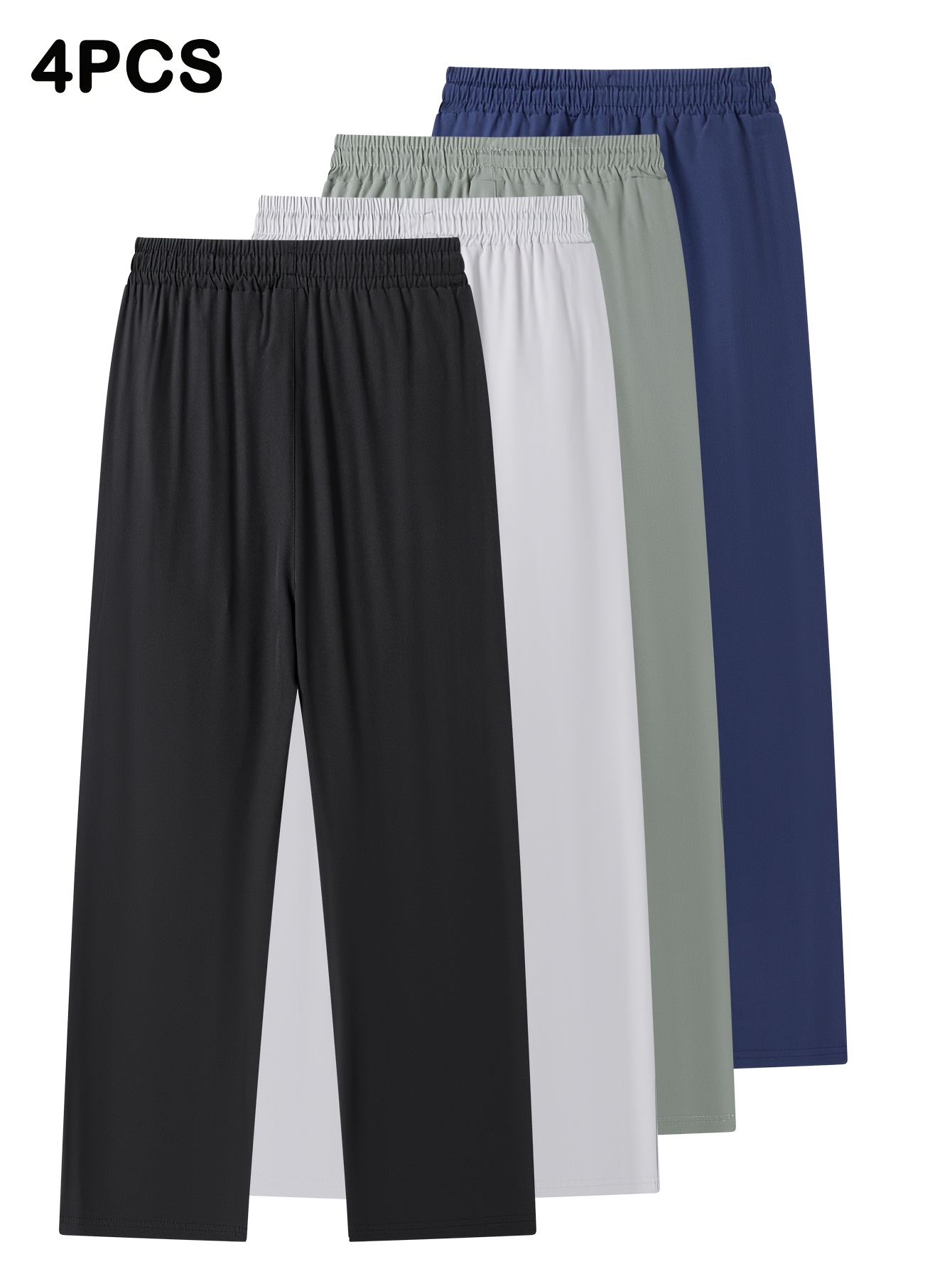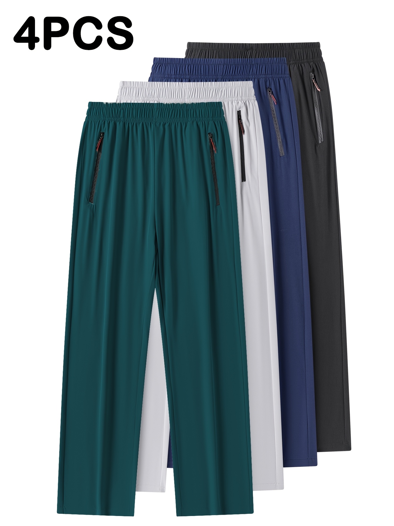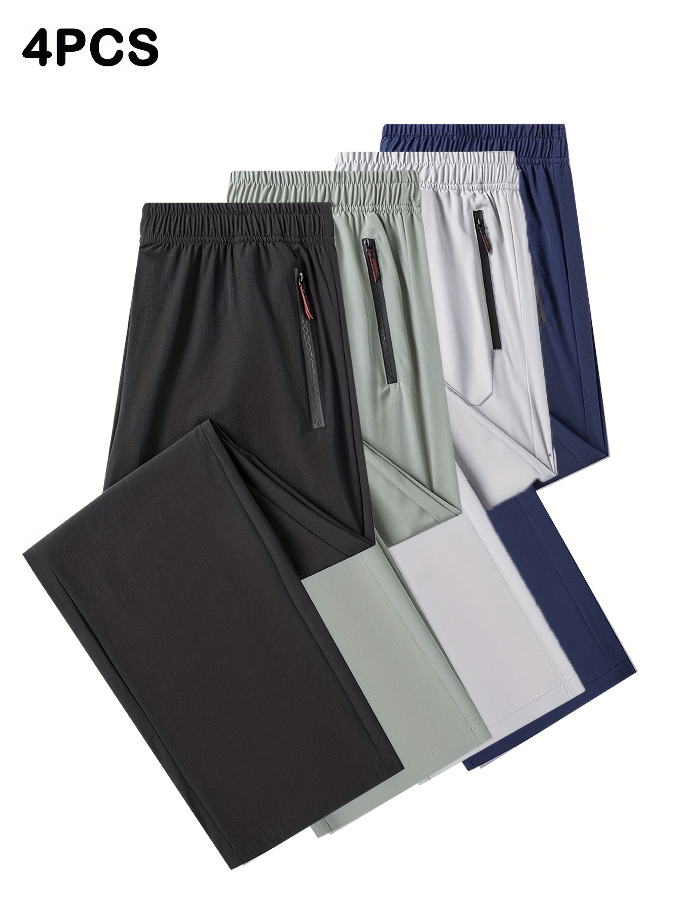 4pcs Pantalons Homme Casual – Cordon, Léger & Stretch, Poches Zippées, Running & Jogging