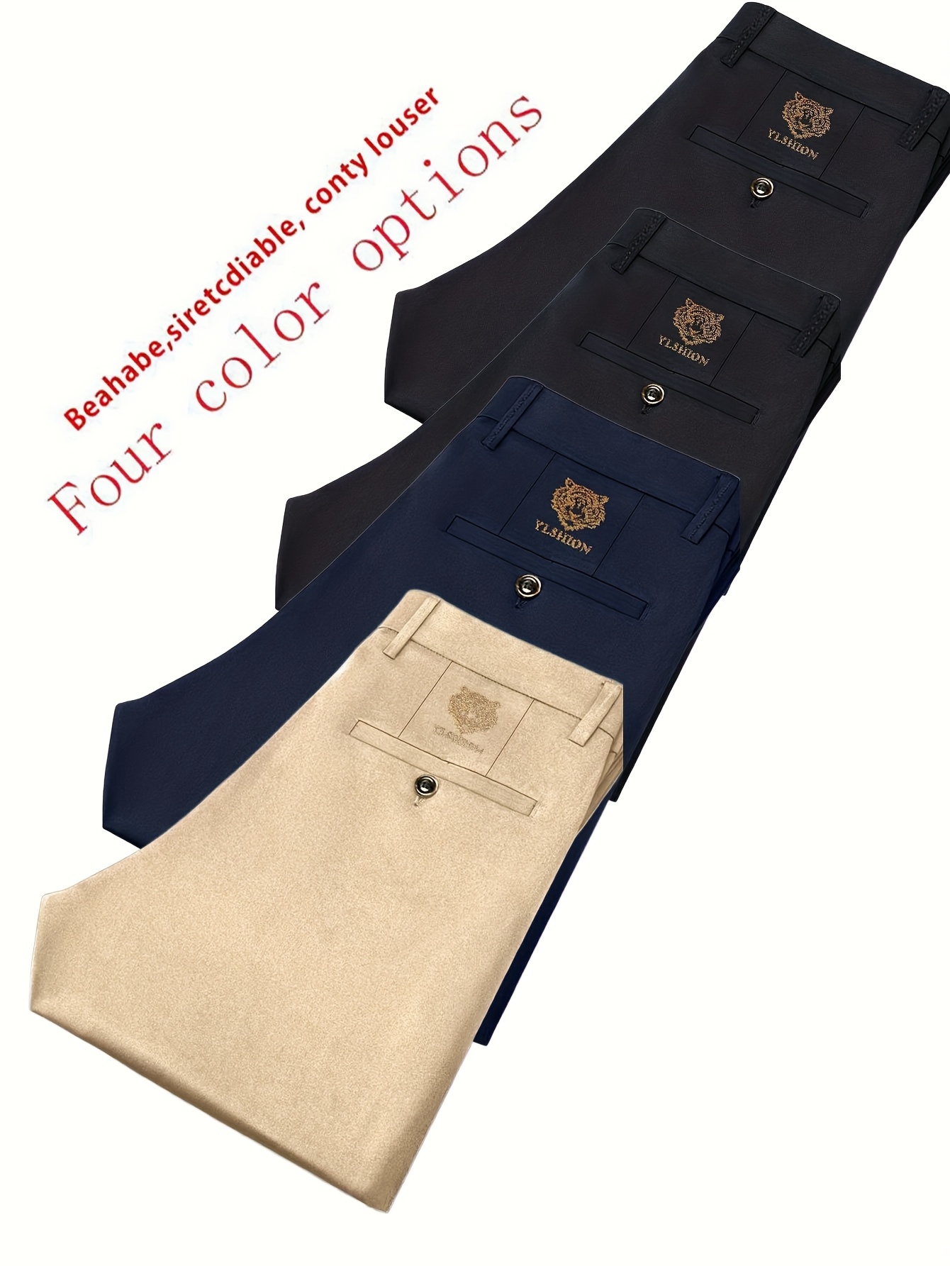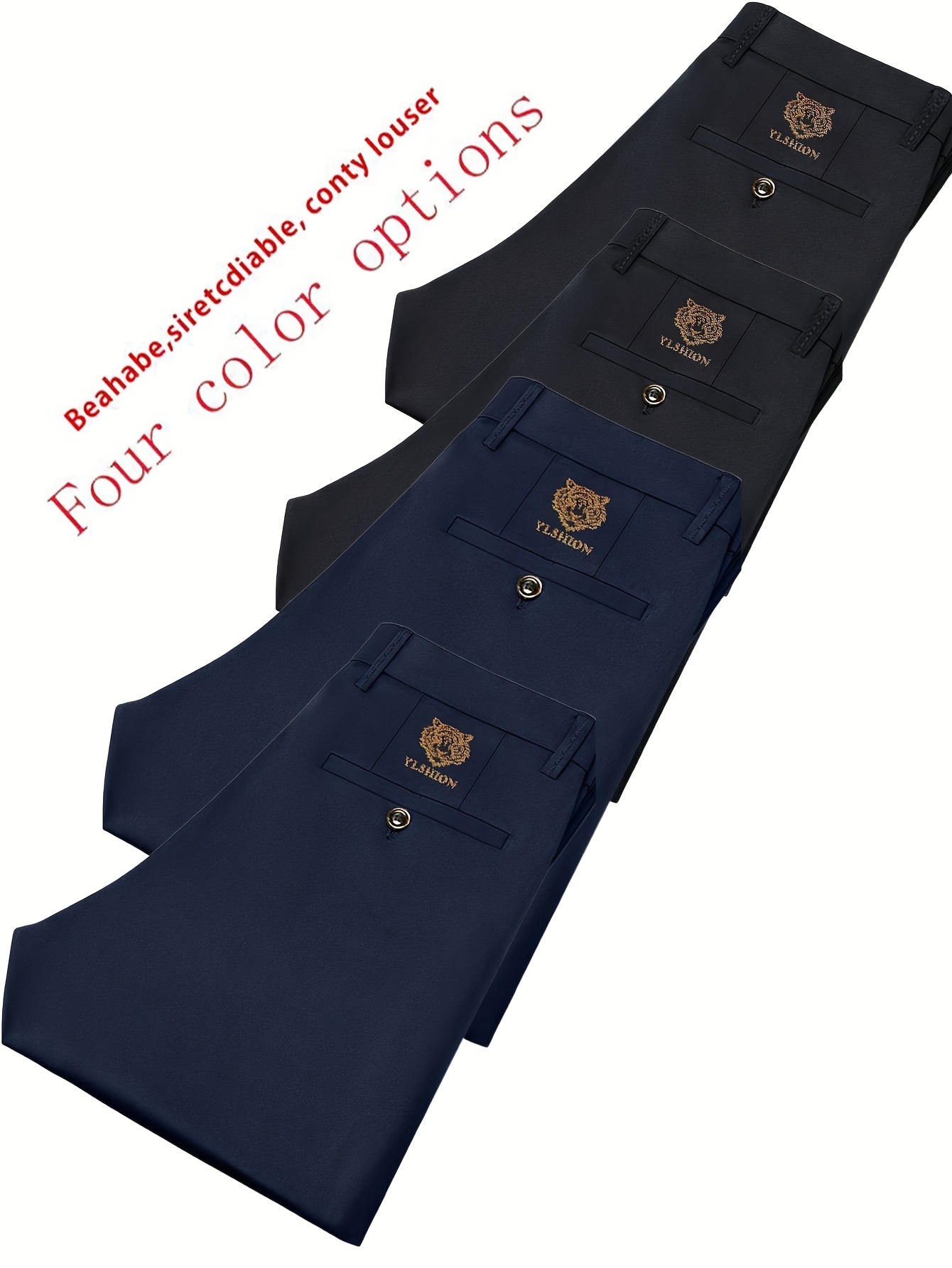 4pcs Pantalons Homme Business Léger – Jambe Droite, Tout Saison, Anti-Rides, Blanc/Noir/Gris/Bleu Marine