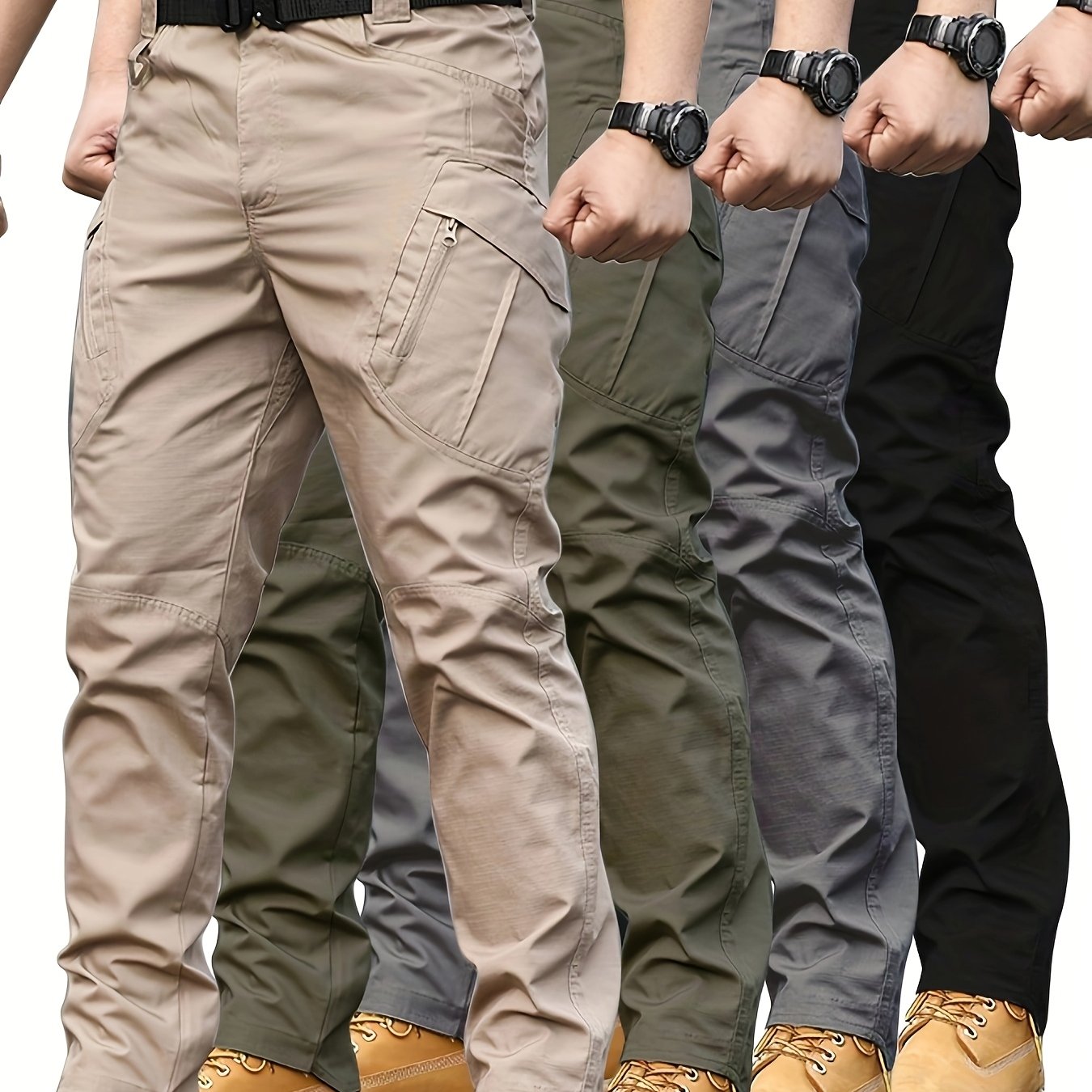 Pantalon cargo tactique pour homme (4 pièces) – multi-poches, taille ajustable, polyester non extensible, tissu durable, idéal pour randonnée, pêche, escalade et usage quotidien