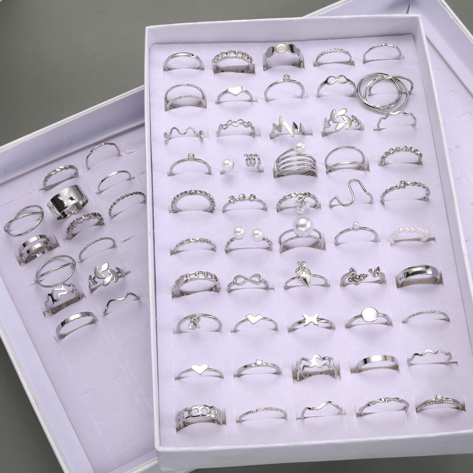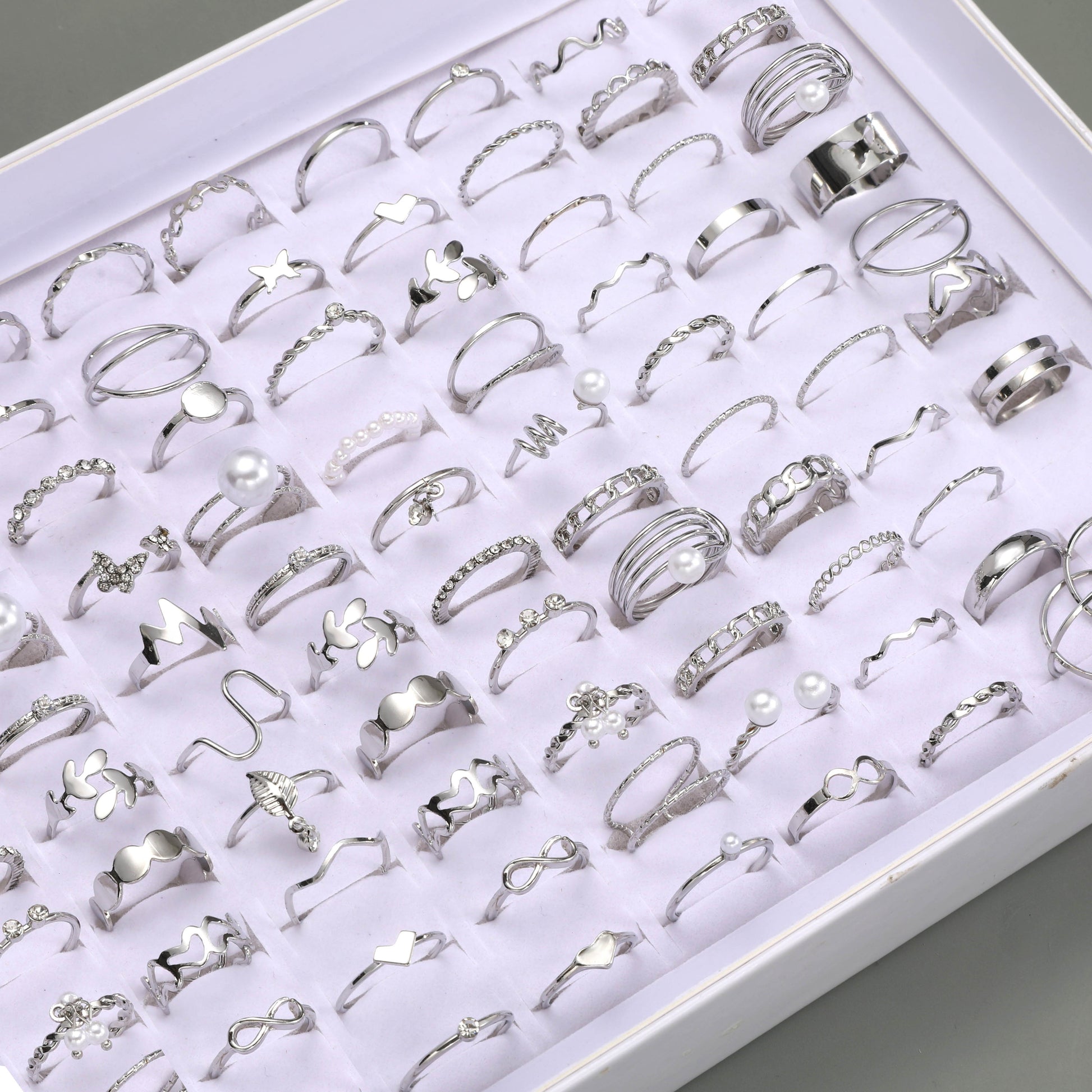 64pcs Fashion Gothic Style Silvery Hollow Stacking Ring Set for Women, Daily Wear Jewelry Accessories, No Box Included
