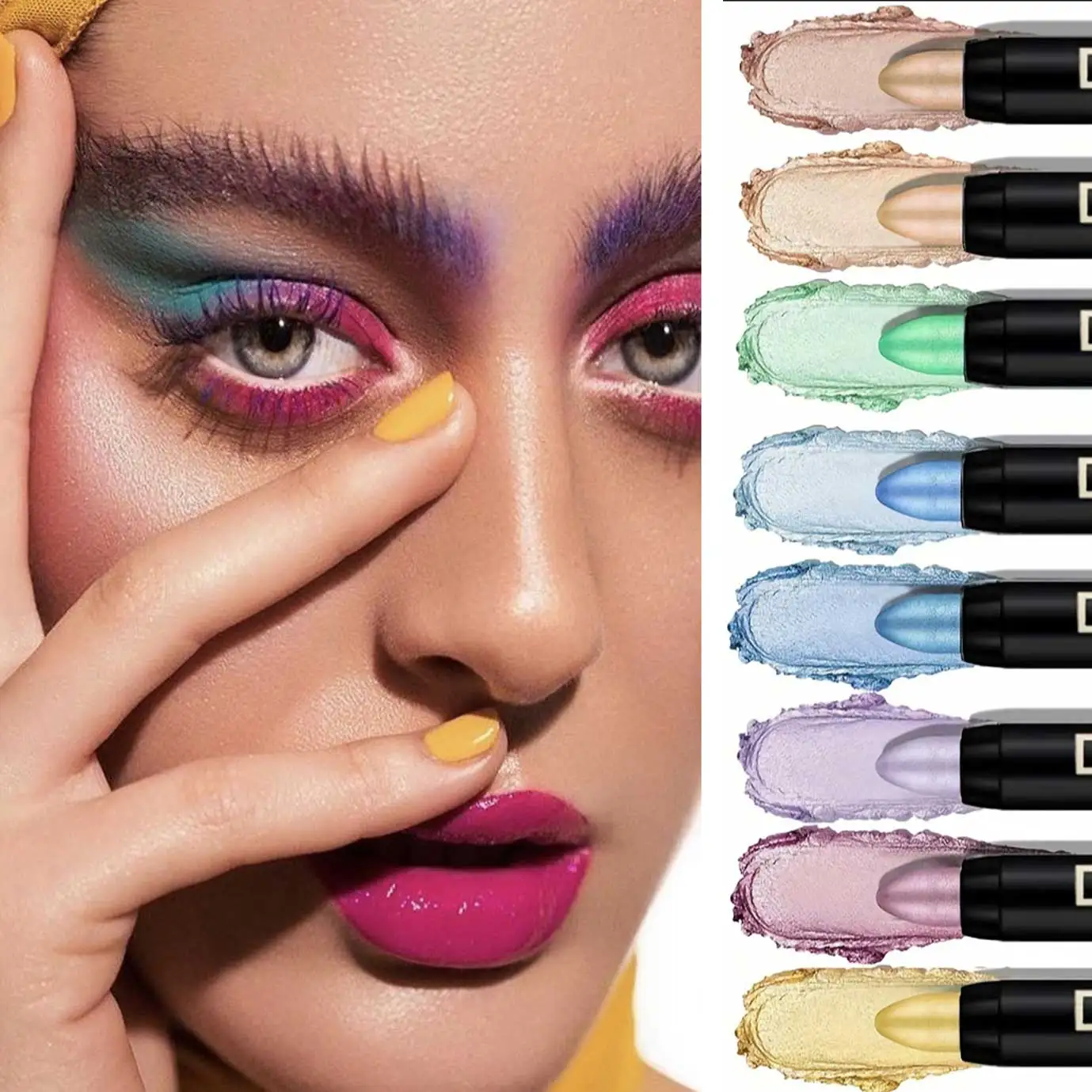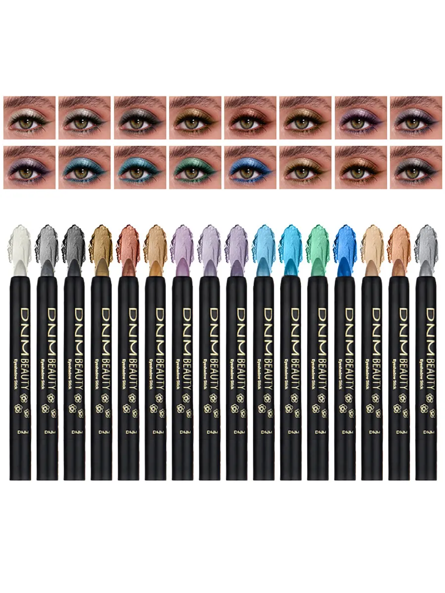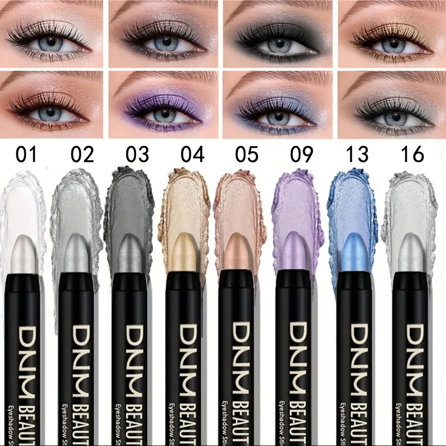 Set 8 crayons fards à paupières métalliques, paillettes champagne et highlighter, waterproof, longue tenue, couleurs marron, corail, noir