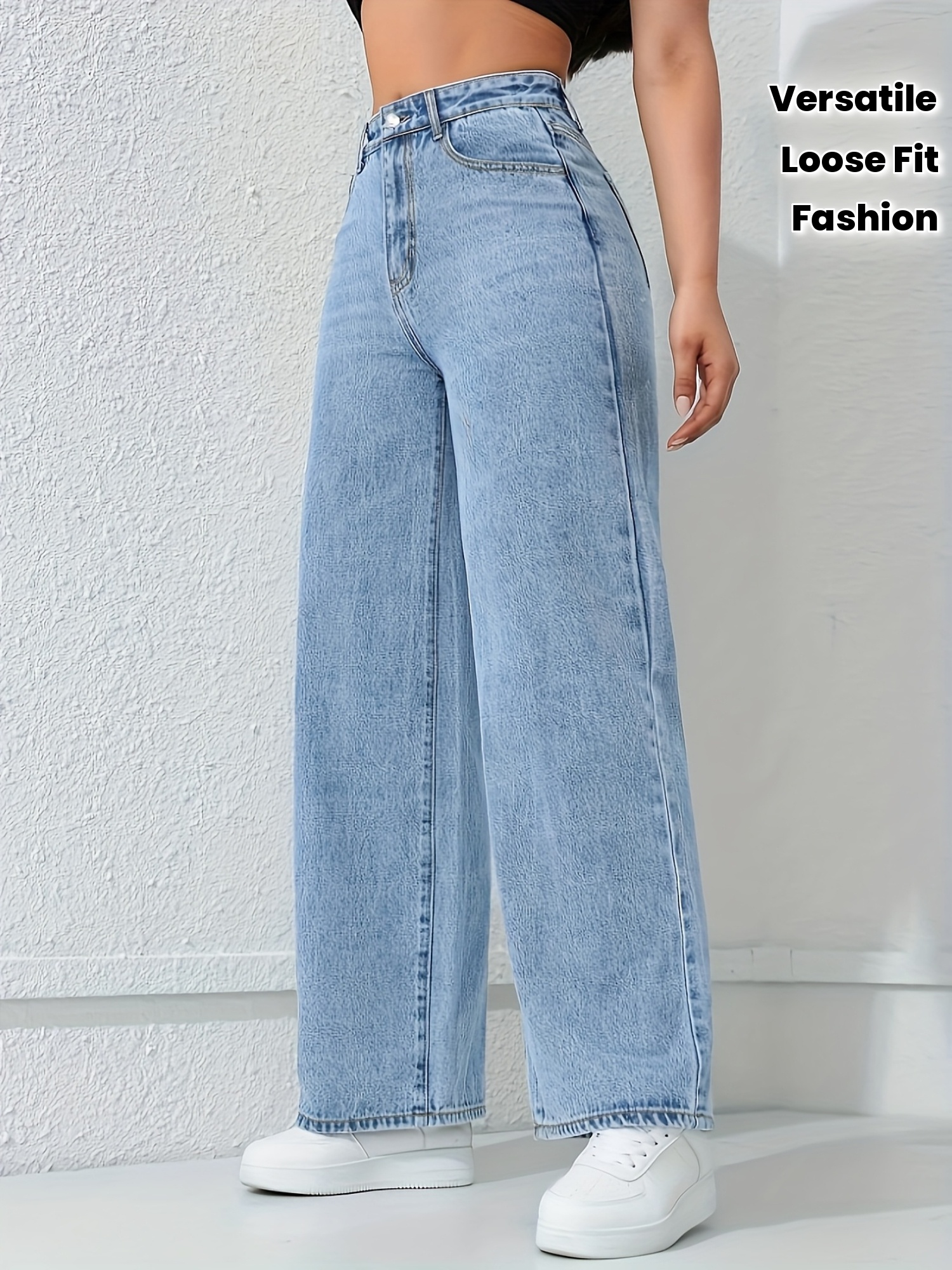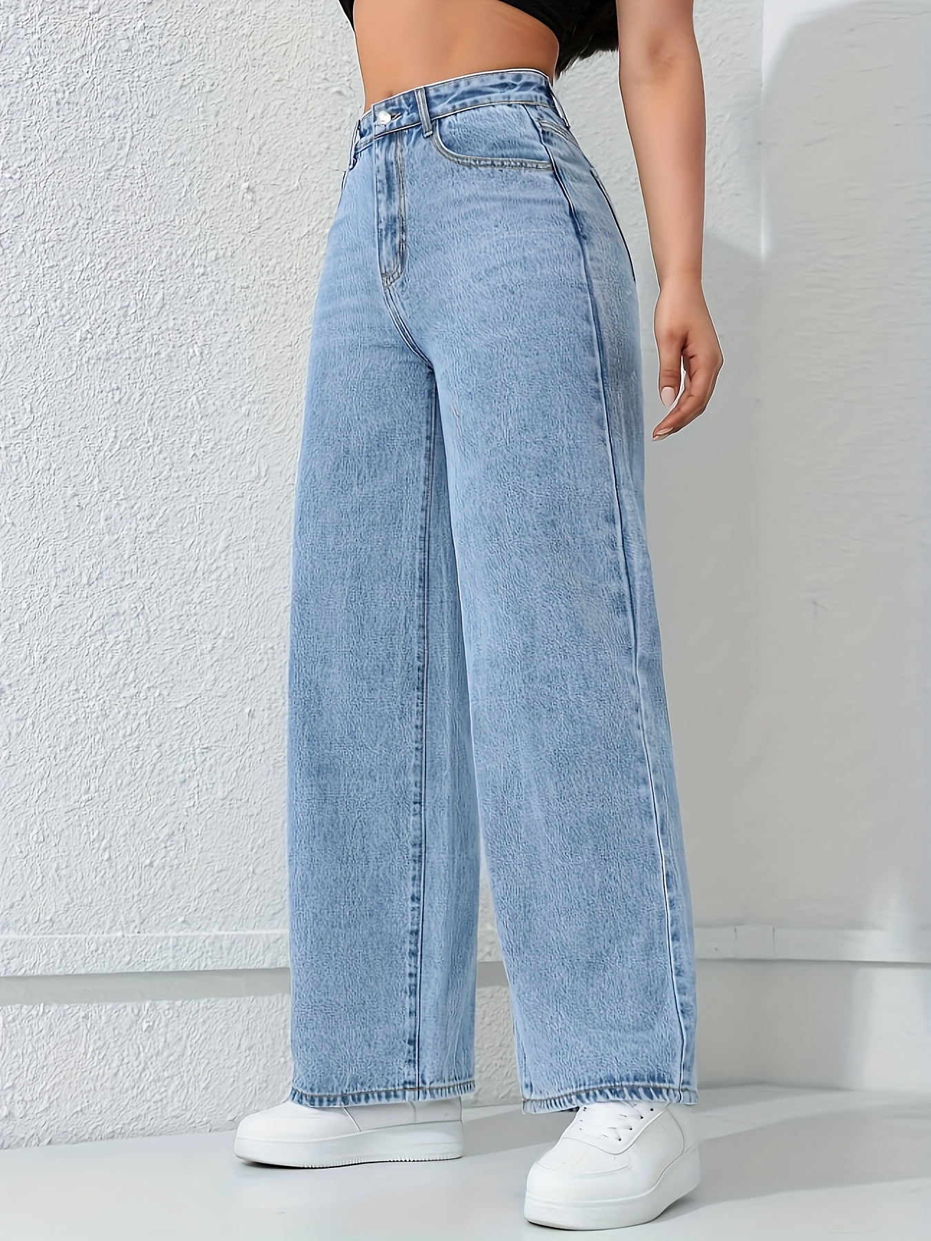 Jeans Femme Décontracté Polyvalent Coupe Ample Jambe Droite