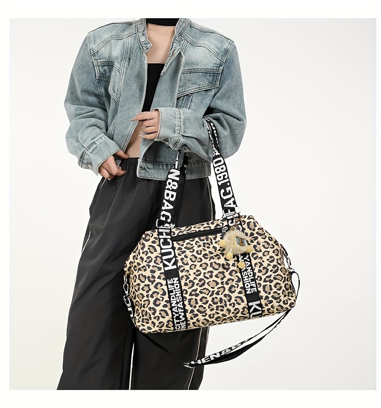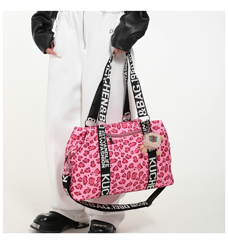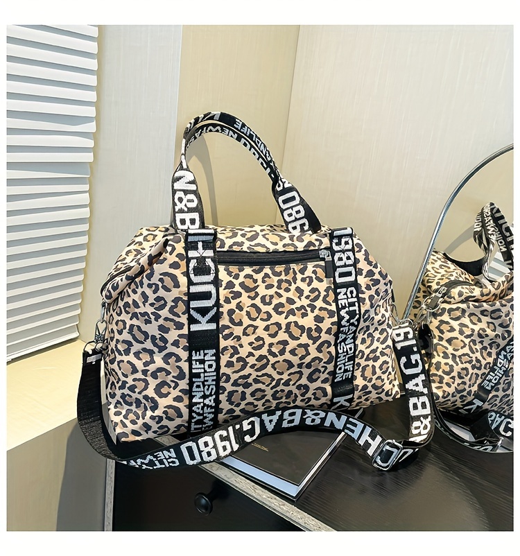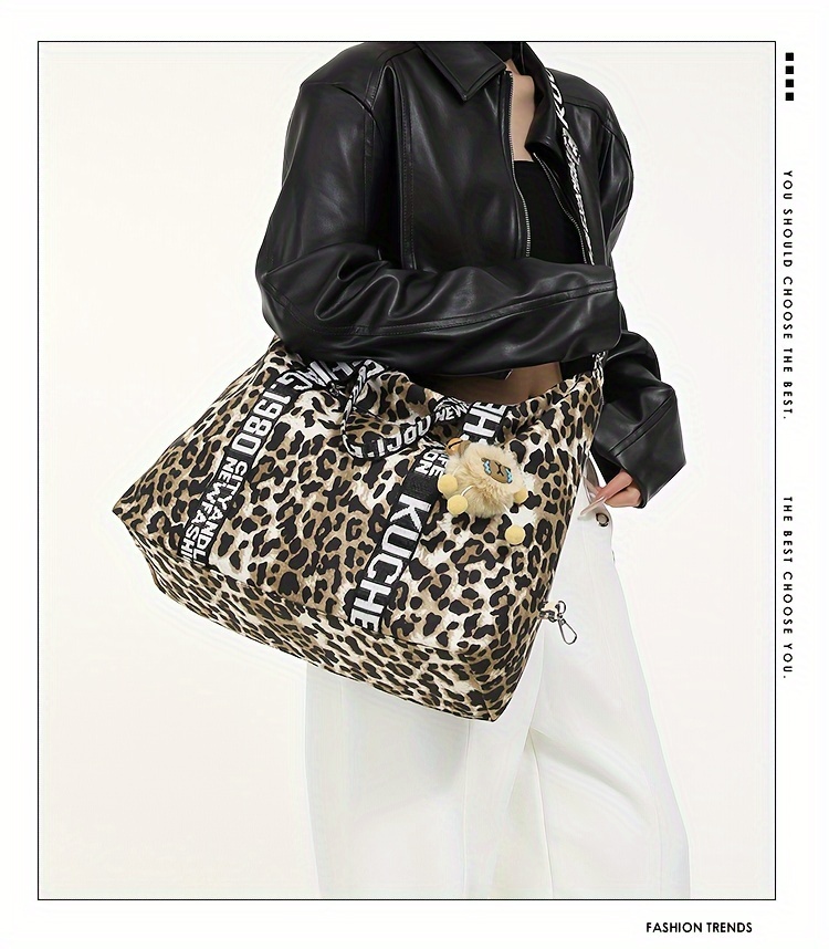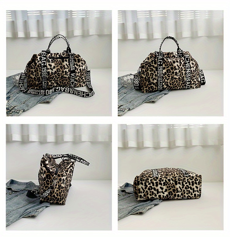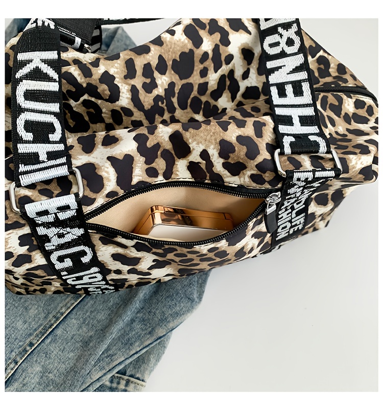 Sac Cabas Chic à Motif Léopard – Grande Capacité, Léger, Sac Polyvalent pour Voyage et Salle de Sport, Bandoulière Amovible, Fermeture Éclair – Rouge/Noir