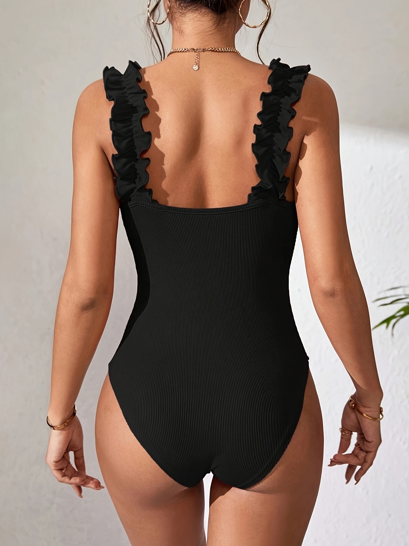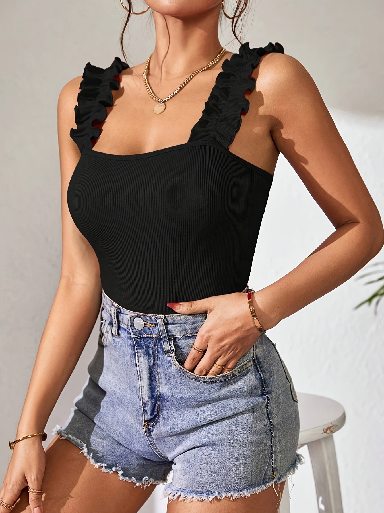 Body chic noir pour femme, épaules dénudées, coupe slim, sans manches, style froncé et élégant, effet amincissant