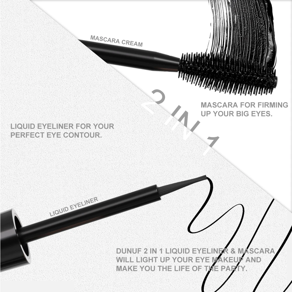 Mascara + eyeliner 2 en 1 waterproof et anti-transpiration allongeant, recourbant et volumisant anti-bavure