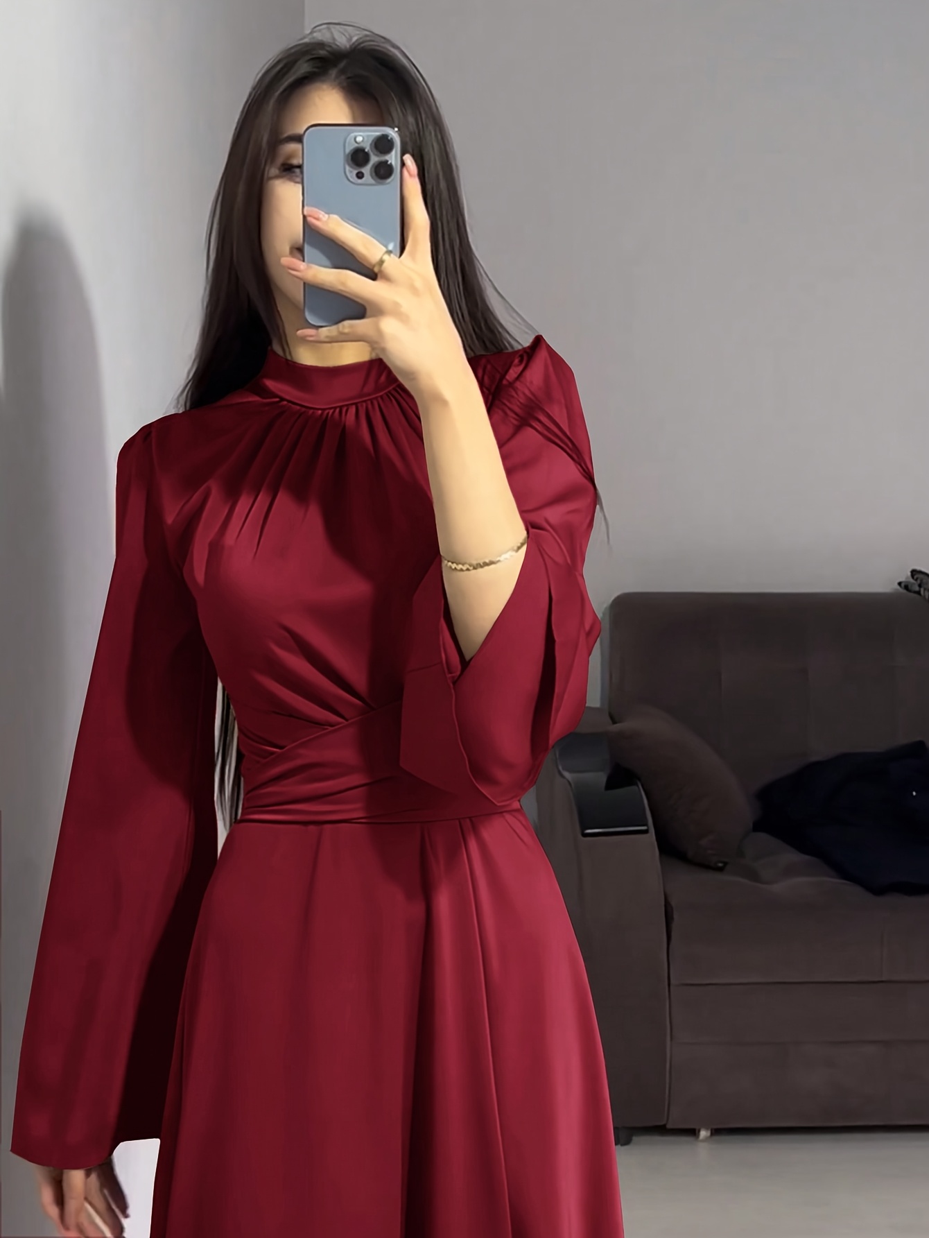 Elegant Arab Dress | Solid Color, Suitable for Spring/Summer/Fall Seasons