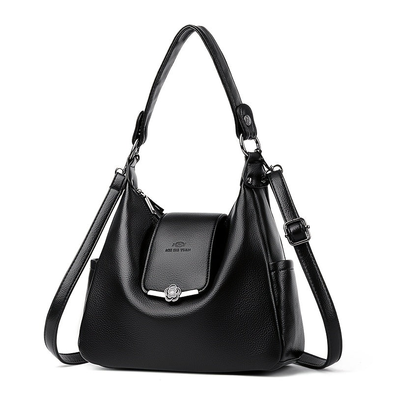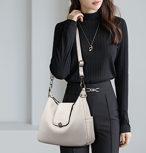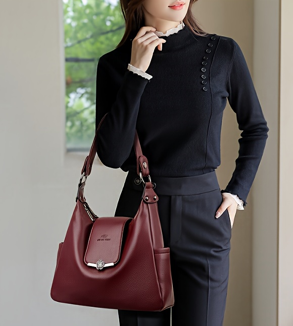 Sac à main européen/américain élégant pour femmes – couleur unie, bandoulière amovible, fermeture zippée, doublure polyester, détails peints, disponible en bordeaux et gris clair