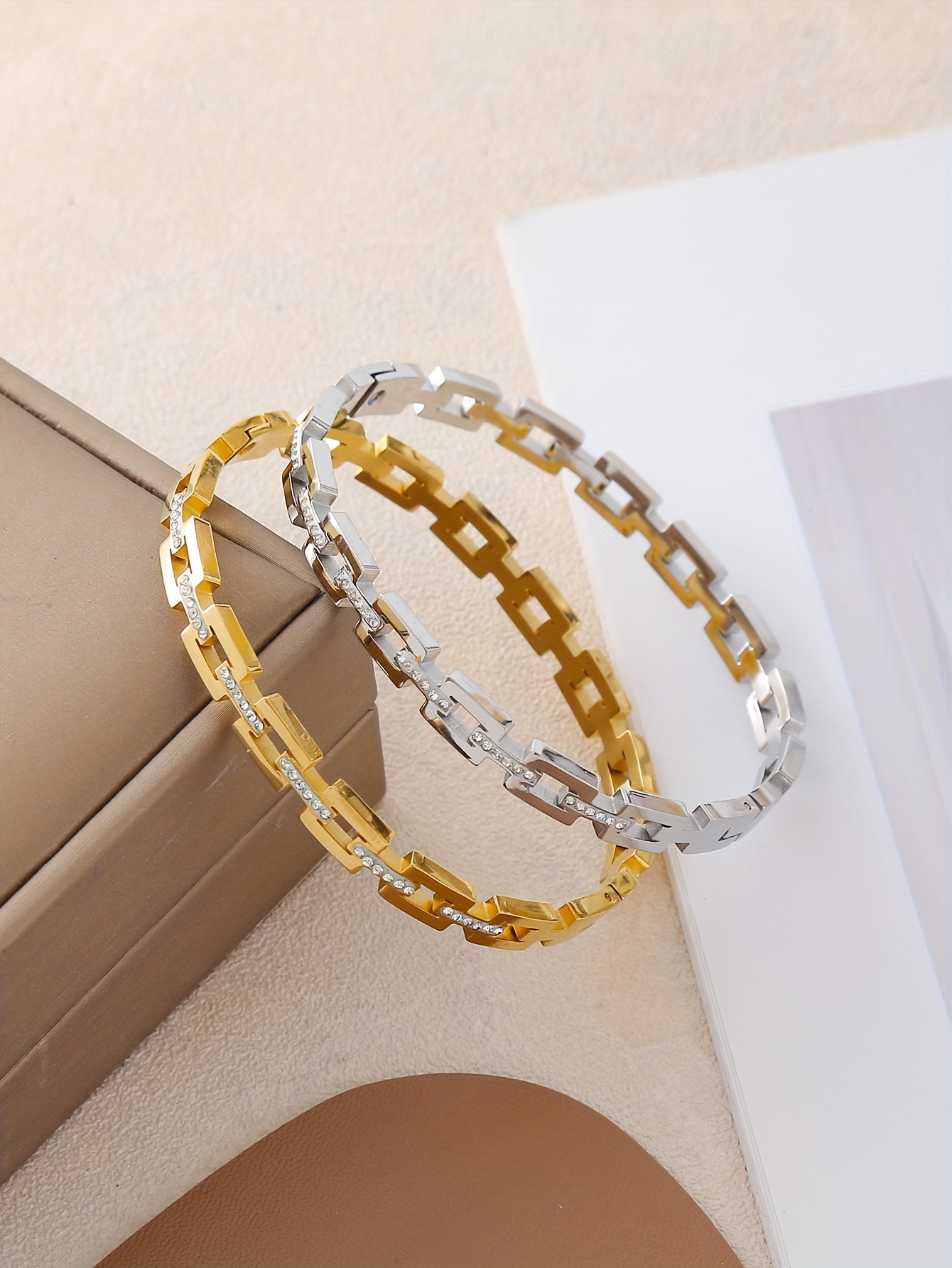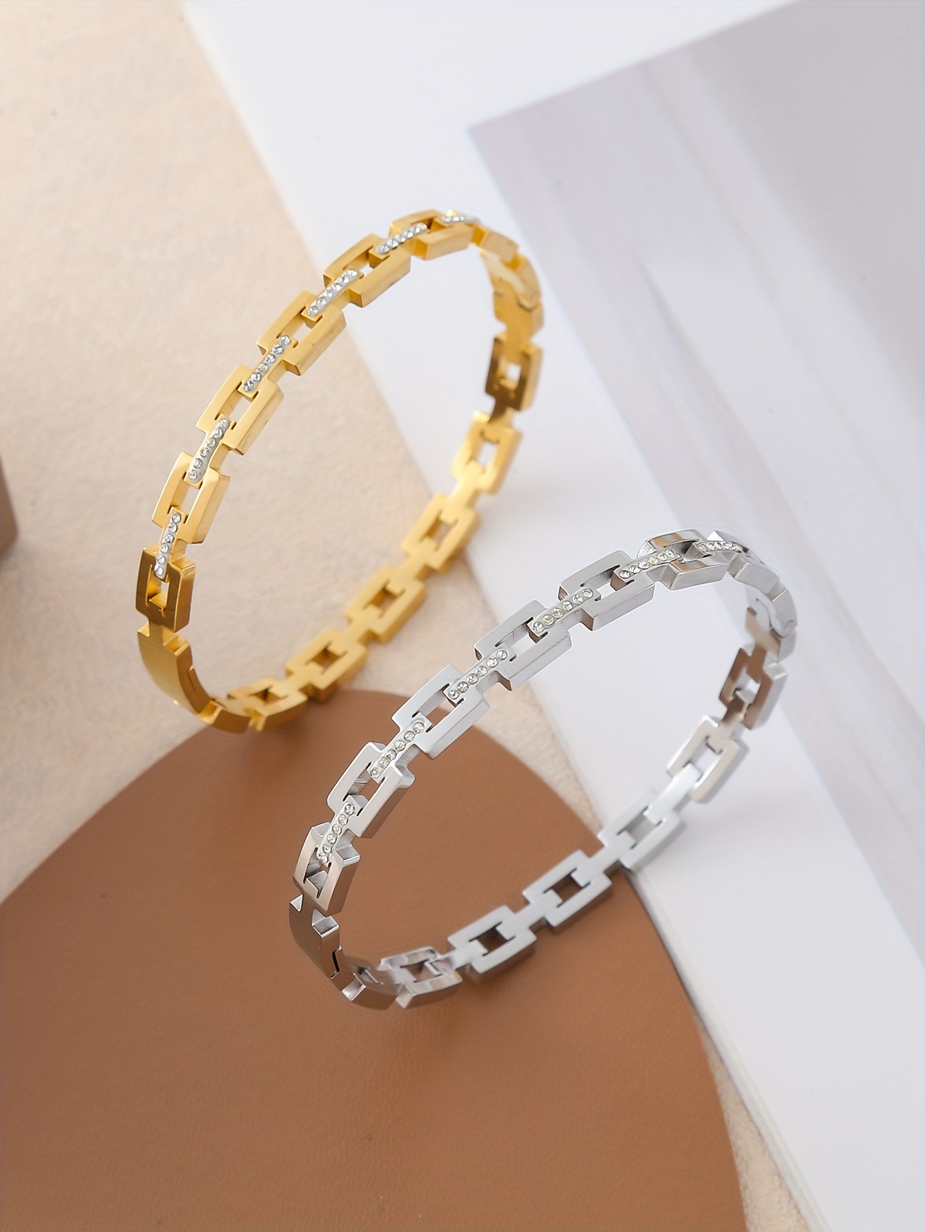 Bracelet Manchette Élégant Infinity – Plaqué Or 18K, Acier Inoxydable Sertie de Strass, Design Classique à Maillons Carrés, Bijou Étincelant, Idéal Cadeau et Accessoire Quotidien, Style Durable et Chic