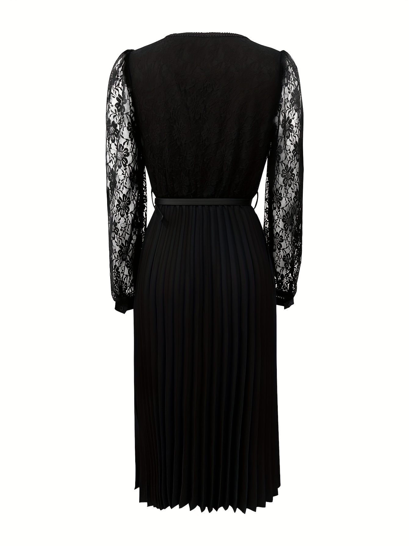 Elegant Long-Sleeve Dress for Women with Lace Patchwork And a Belt, New Autumn Style.