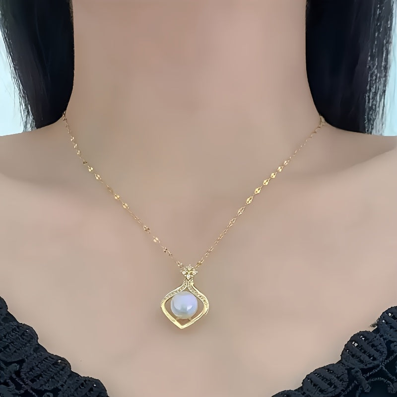 Collier Élégant Femme – Pendentif en Acier Inoxydable Plaqué Or 18K avec Perle Imitation, Hypoallergénique, Design Simple et Luxueux, Idéal Quotidien, Soirées et Cadeau, Accessoire Minimaliste Polyvalent