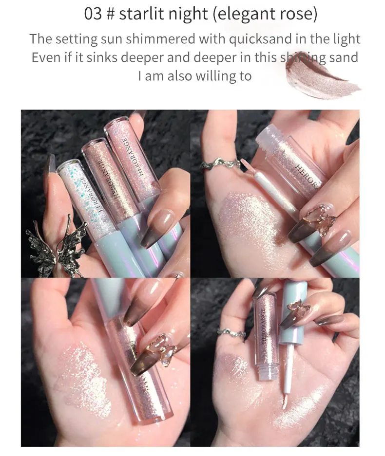 Fard à paupières liquide nacré, film fin et brillant, haute brillance, soyeux, illuminateur yeux