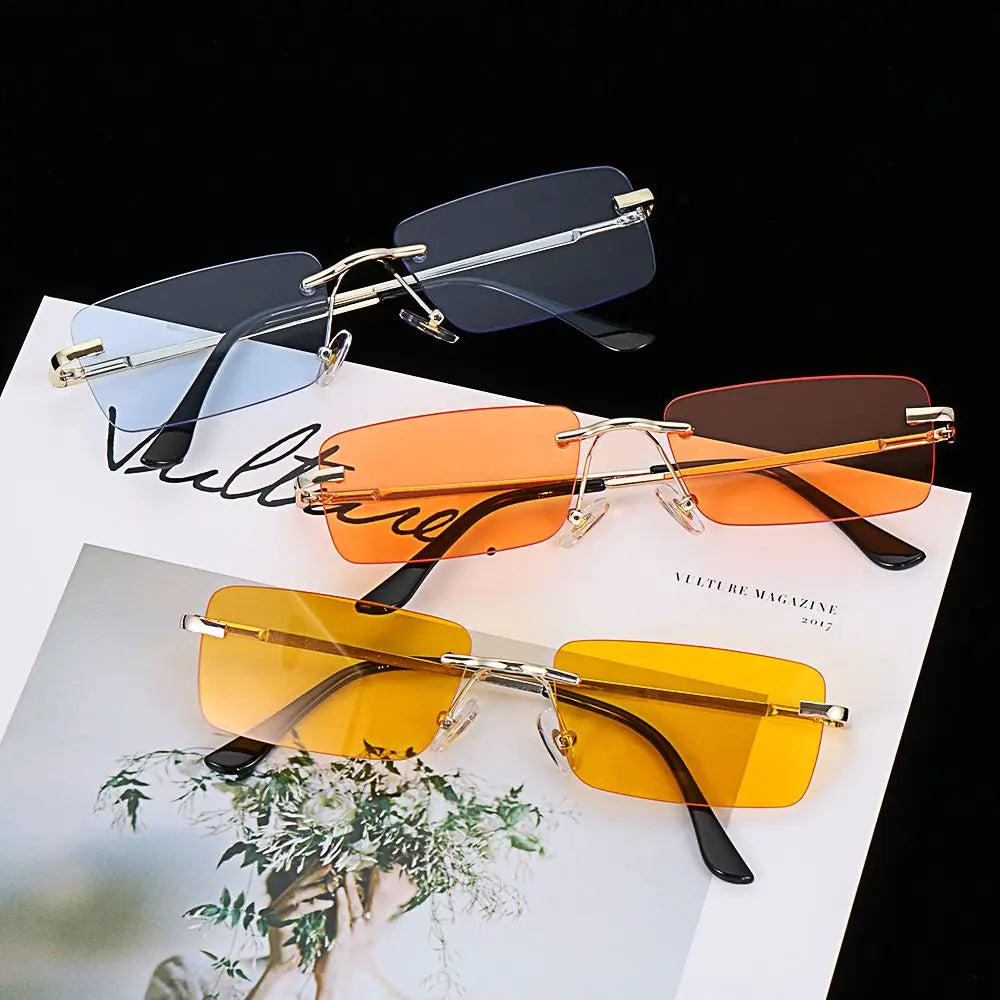 « Lunettes de soleil rectangle – Sans monture, unisexes, vintage UV400 »
