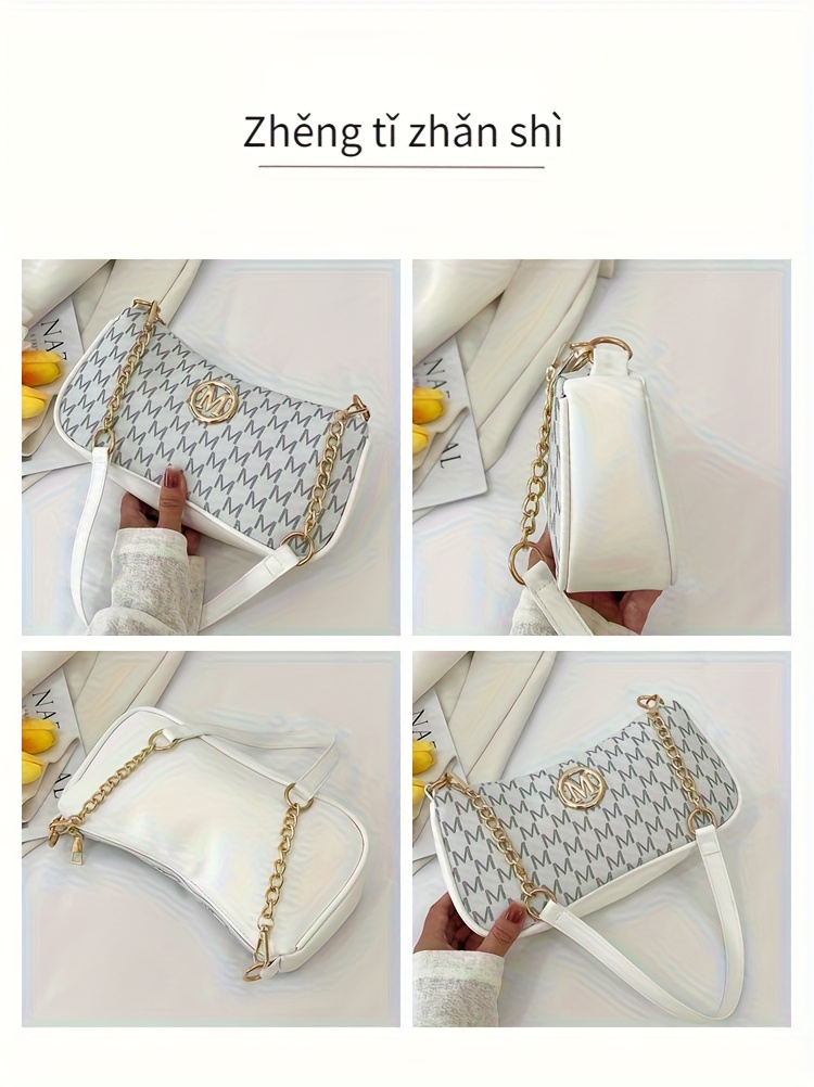 Sac Rétro Français Femme – Petit Sac Carré à Chaîne avec Imprimé Lettre et Logo M, Fermeture Éclair, Bandoulière, Idéal Quotidien, Sorties Décontractées et Voyage, Accessoire Mode Élégant