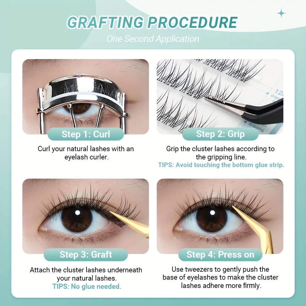 This method is free from glue, seals, or any chemical exposure to your eyelashes throughout the entire procedure, ensuring it is entirely safe and non-toxic. The application is straightforward; just use tweezers to position the lash clusters under your natural lashes, making it easy and quick, thus reducing your makeup time.