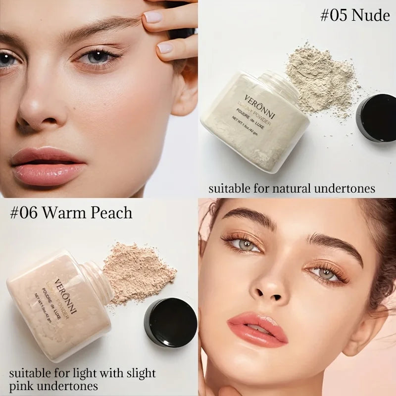 1. Loose set powder - launch your favorite new loose set powder to create a bright, smooth, and even skin tone. Can be used alone or lay the foundation for all-day wear. Use this long-lasting powder to brighten your eyes or set up your face for an instant brightening effect. It brings a soft matte effect of natural luster and banana fragrance! Use brush to easily apply the product and create a perfect flawless makeup look. Suitable for various occasions, create a full face look!