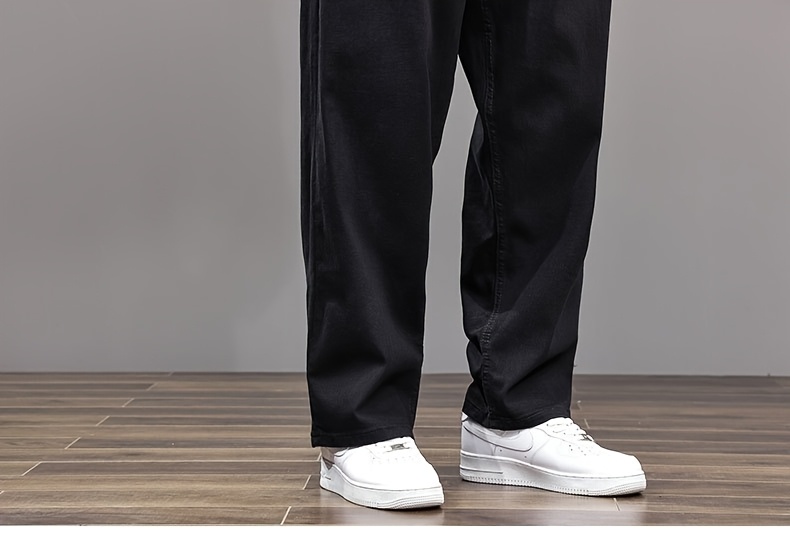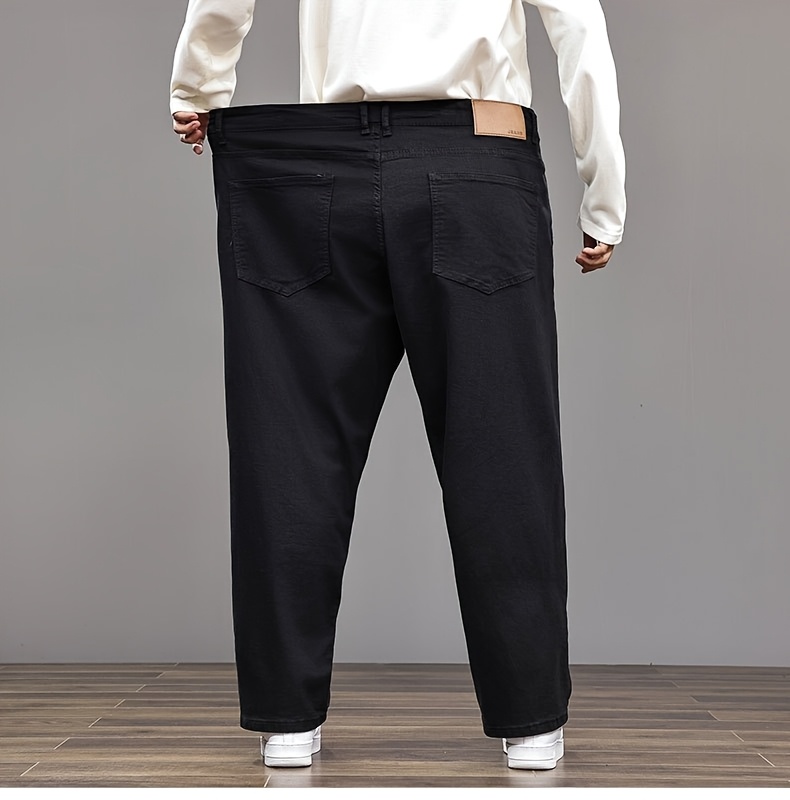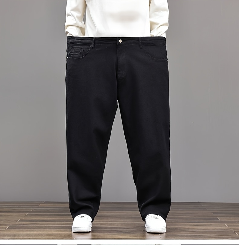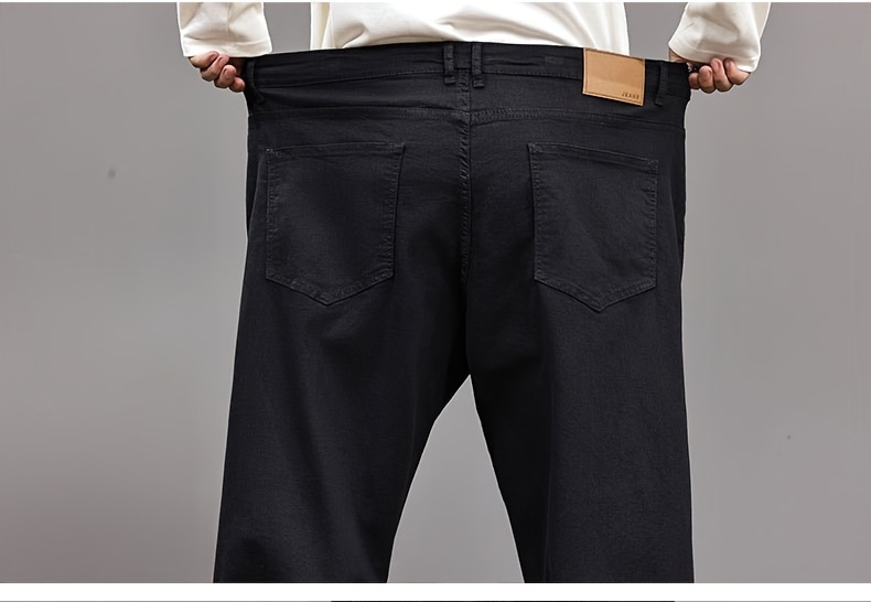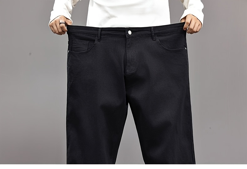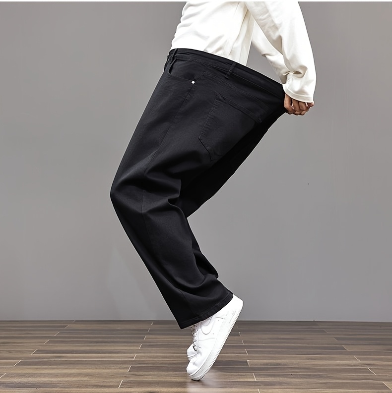 Pantalon faux denim grande taille pour homme (2XL–8XL) – coupe droite extensible, tissu opaque, couvrance ventre, confortable et polyvalent, adapté tenue formelle et décontractée