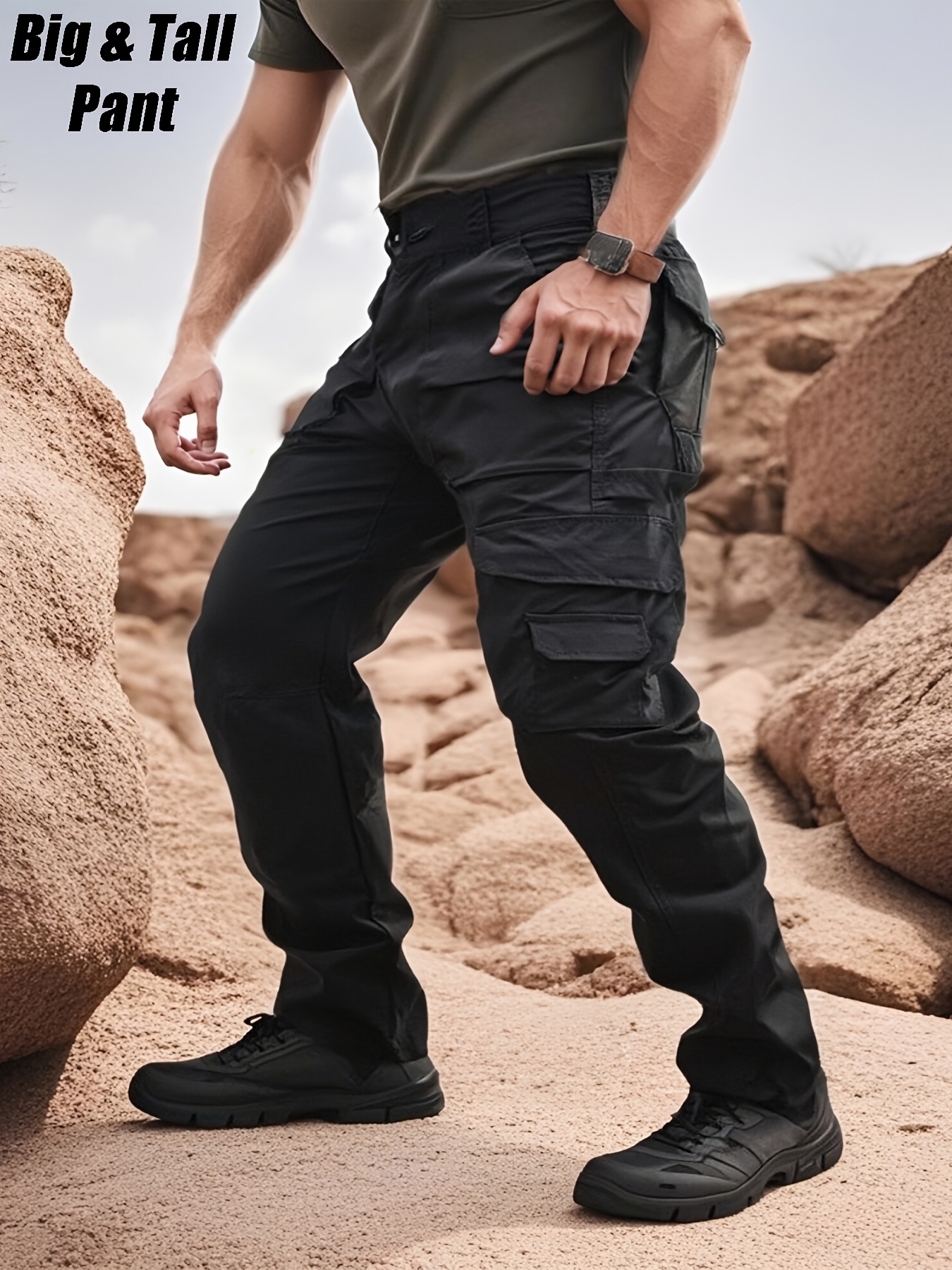 Pantalon cargo robuste grande taille pour homme – multi-poches avec système MOLLE, passants de ceinture et poches zippées, coupe droite, idéal outdoor, randonnée, chasse et camping