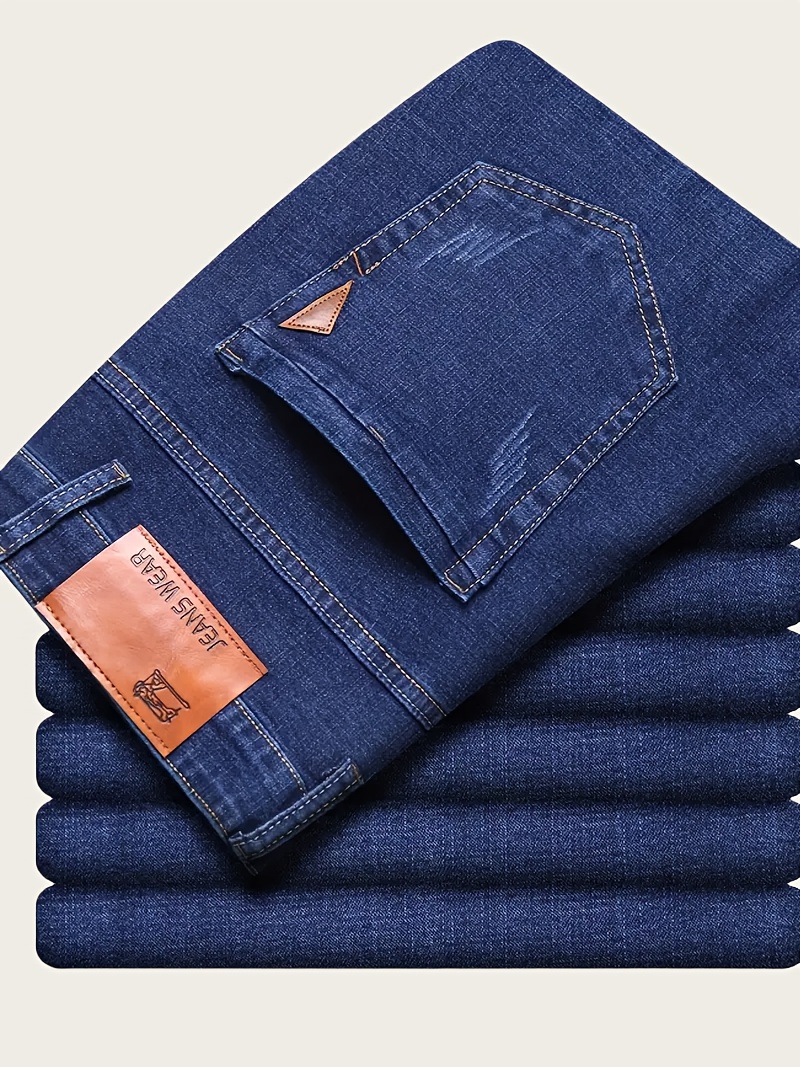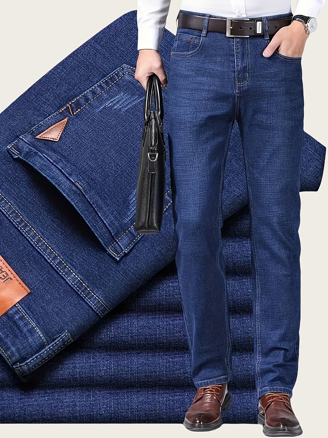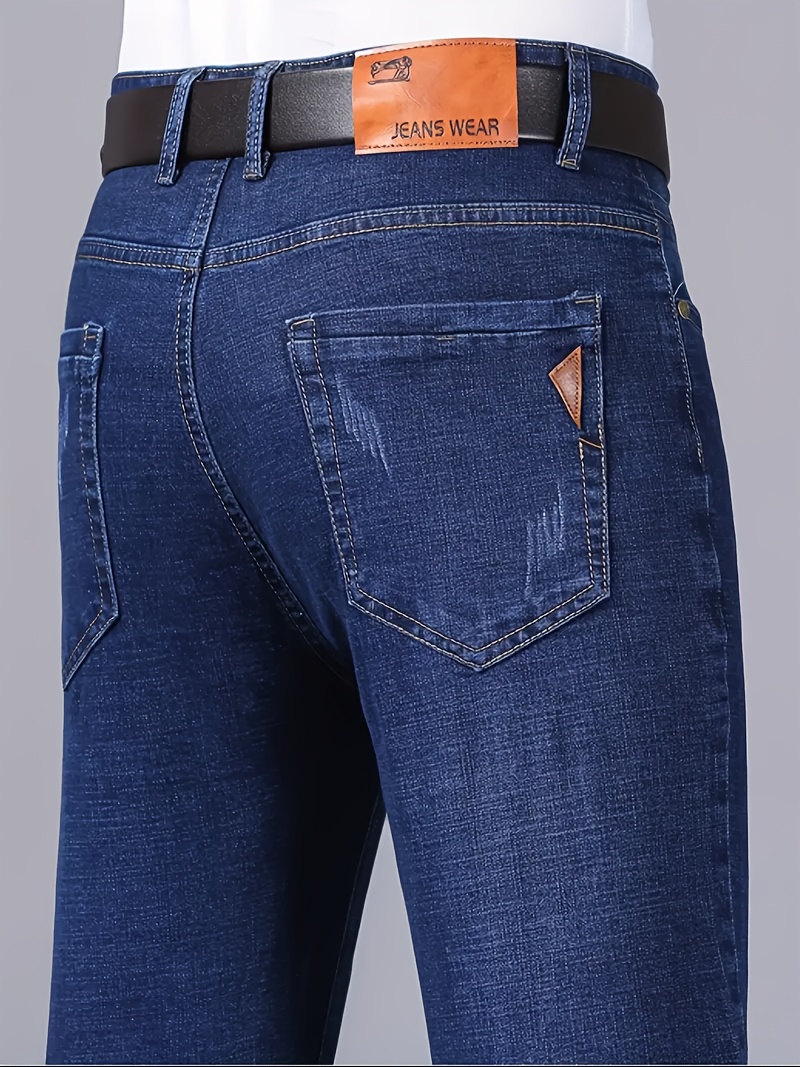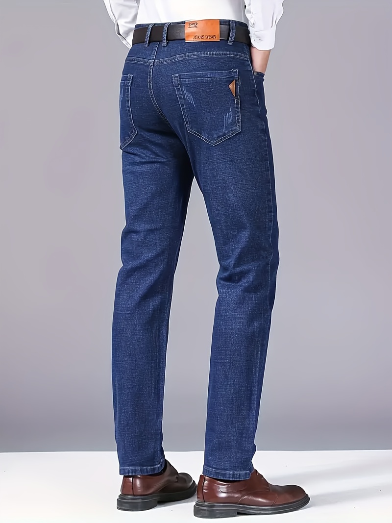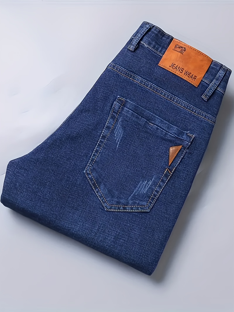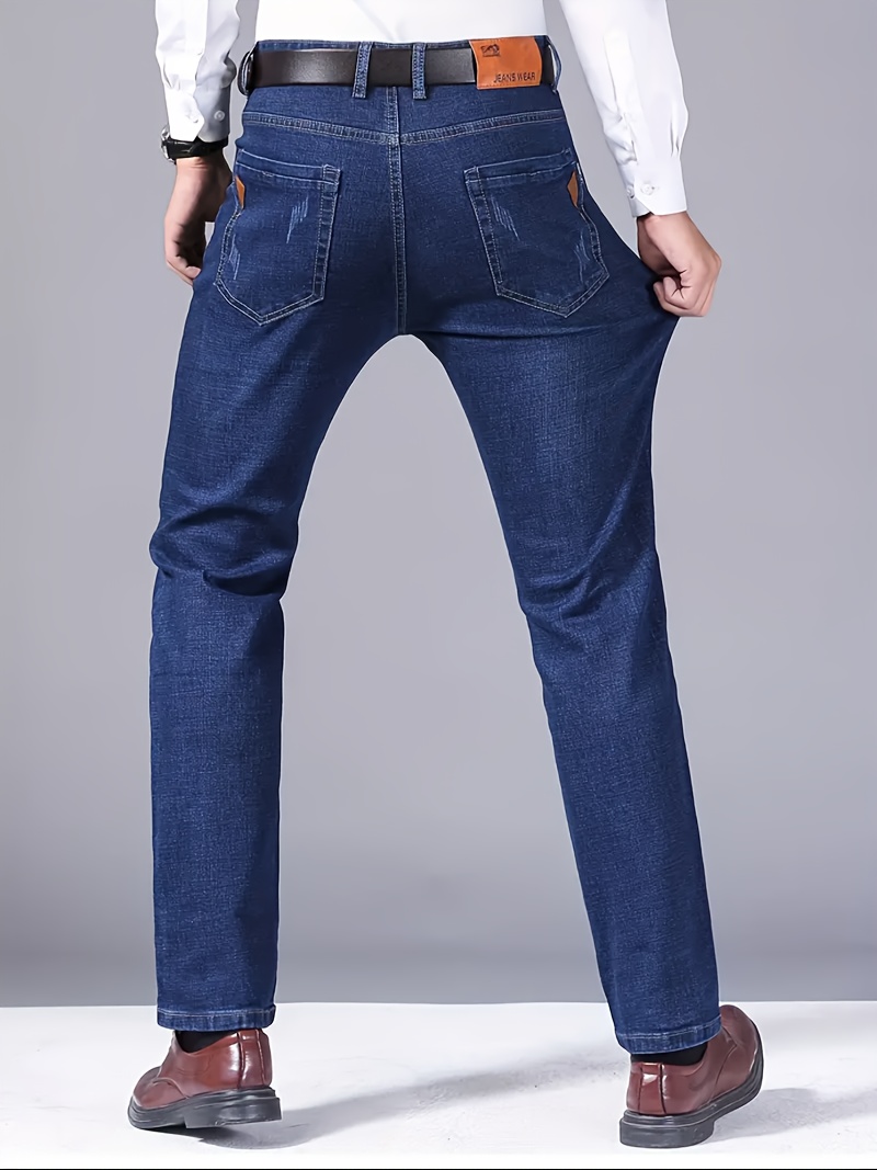 Jean en denim stretch pour homme – motif géométrique bleu foncé, confort toutes saisons