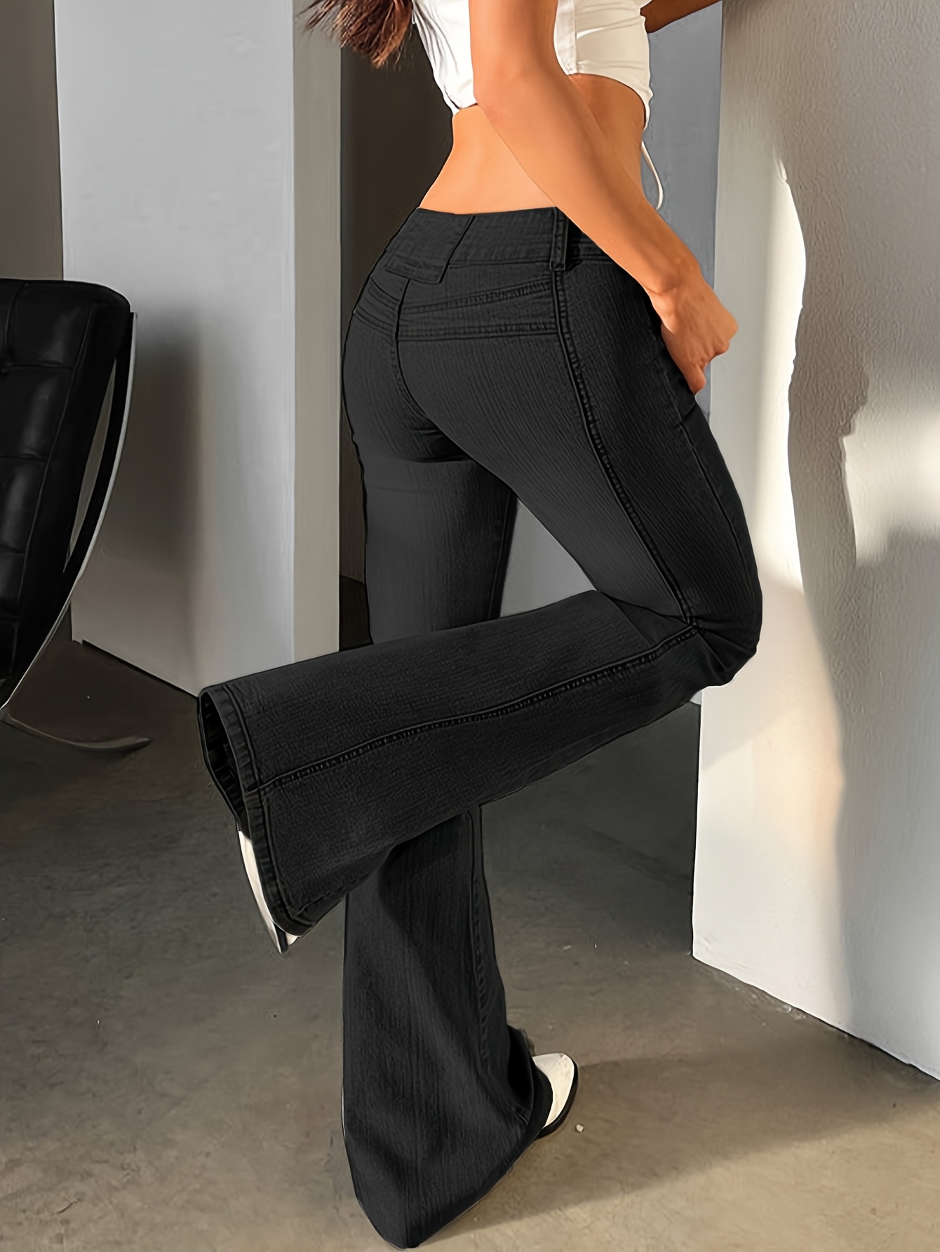 Jeans Femme Skinny Extensible Taille Basse Double Boutons Poche Rabat Cargo Denim Noir Mi-Extensible Lavable Décontracté Toute Saison Confortable