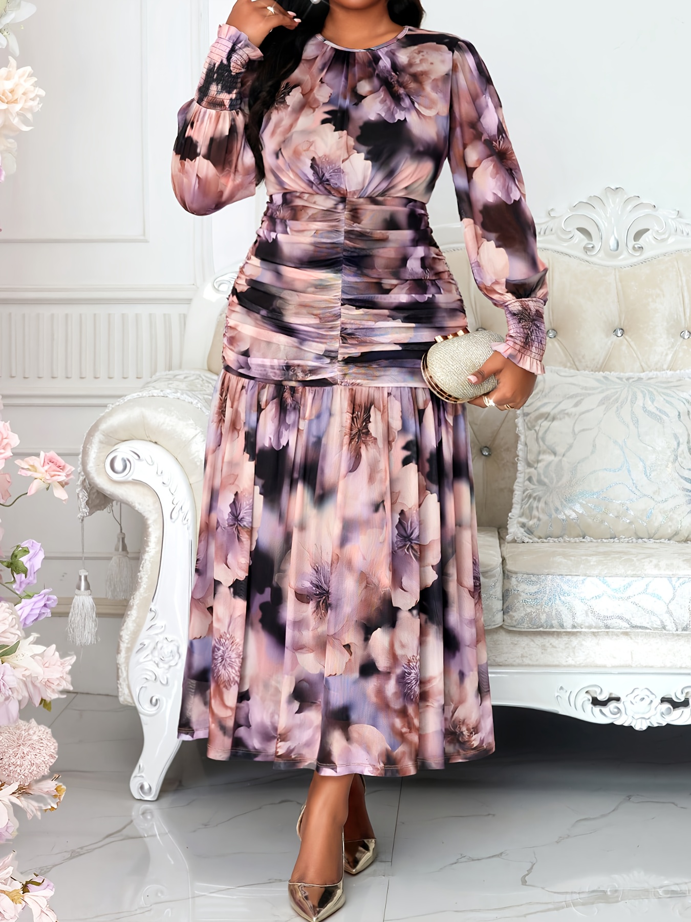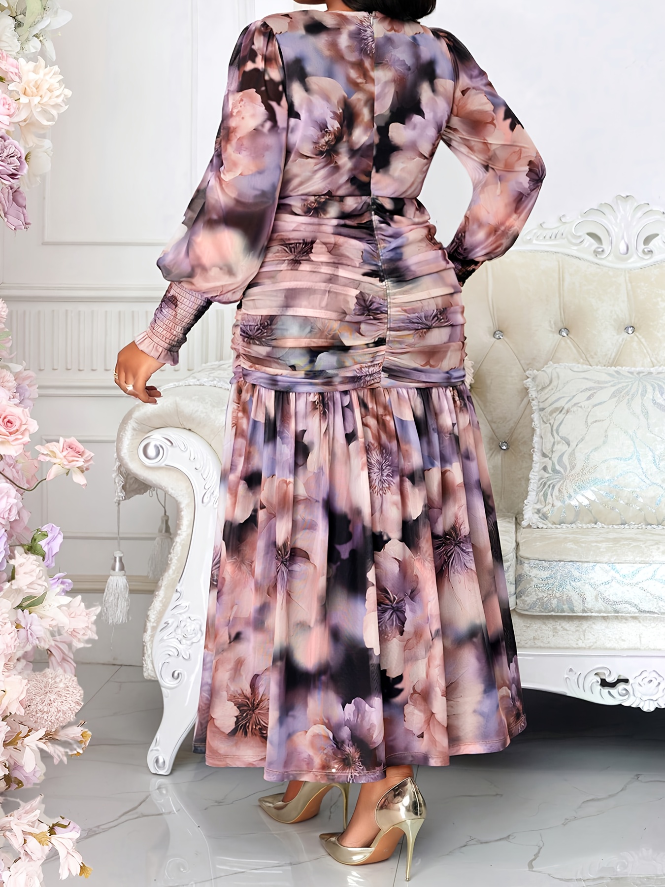 Robe Longue Grande Taille Élégante – Coupe A-Ligne/Sirène avec Traîne, Manches Bouffantes, Jupe Évasée, Taille Sans Ceinture, Fermeture Zippée au Dos, Idéale Soirées et Événements