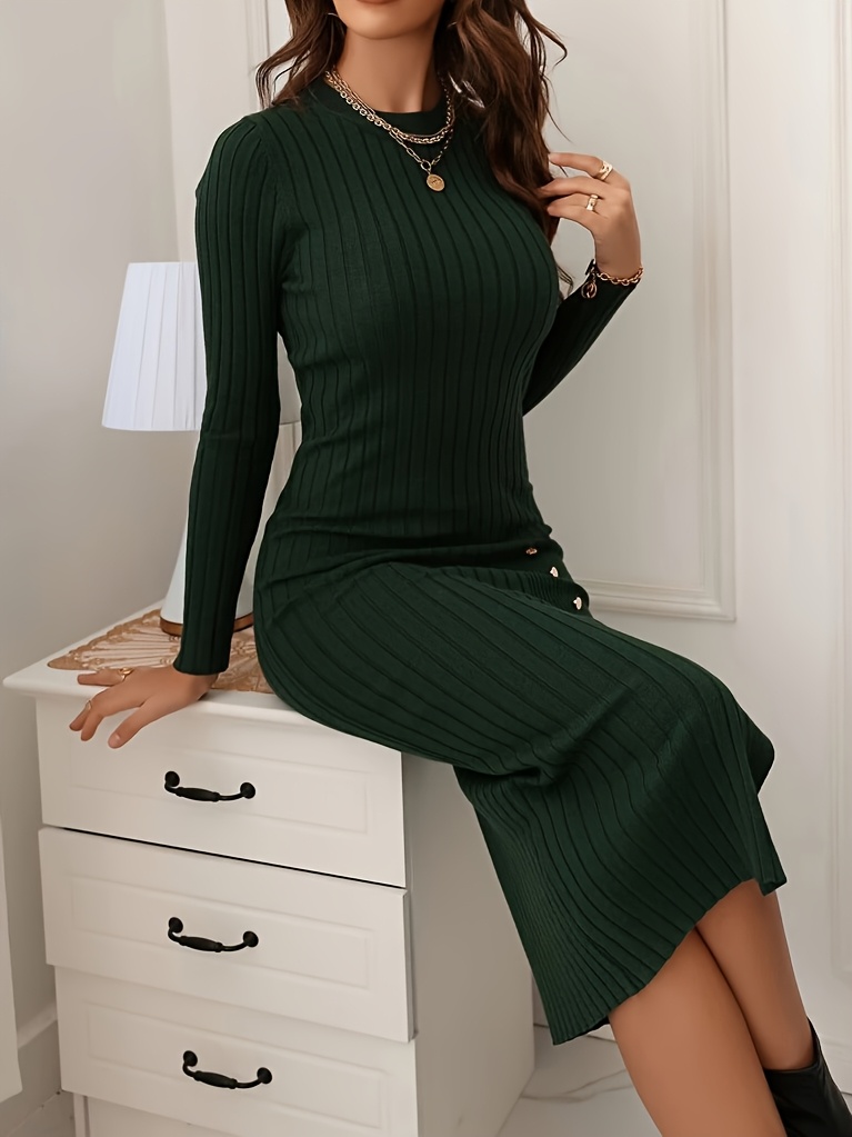 Solid Color Side Split Beltless Slim Fit Autumn Winter Dress 2111155665275355 Vika Targeted