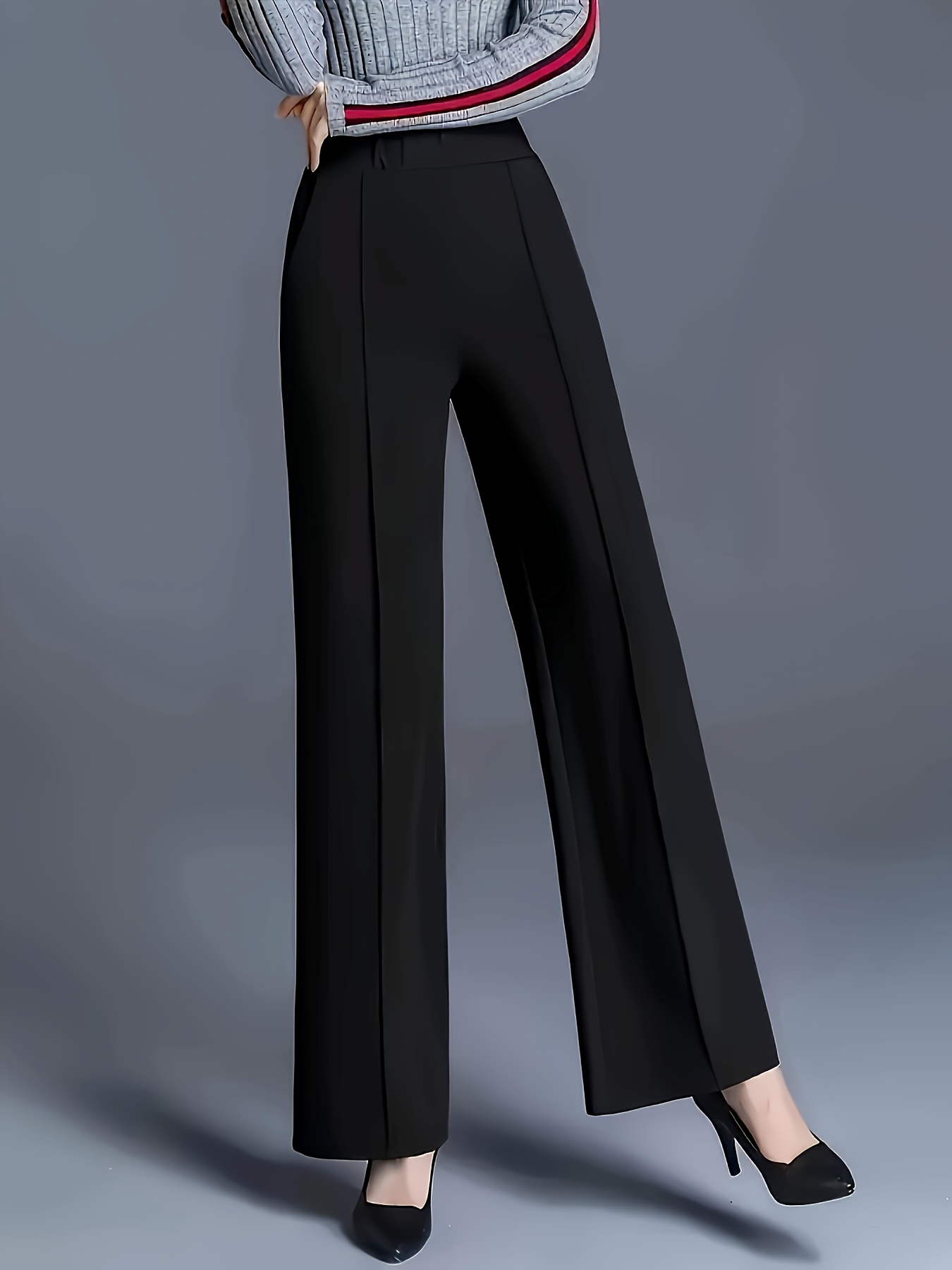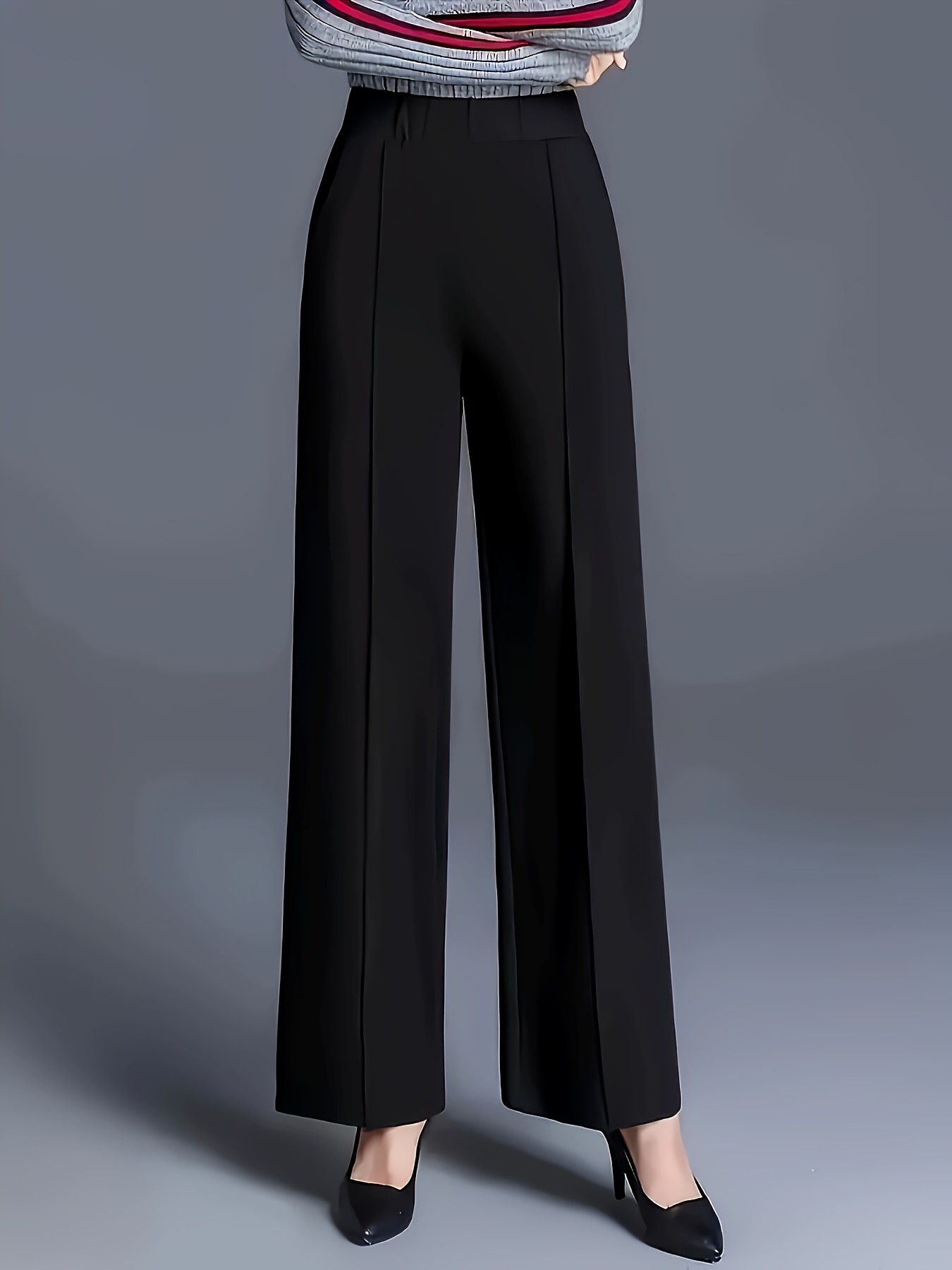 Pantalon Femme Taille Haute – Taille Élastique, Poches Obliques, Confortable, Bureau et Décontracté